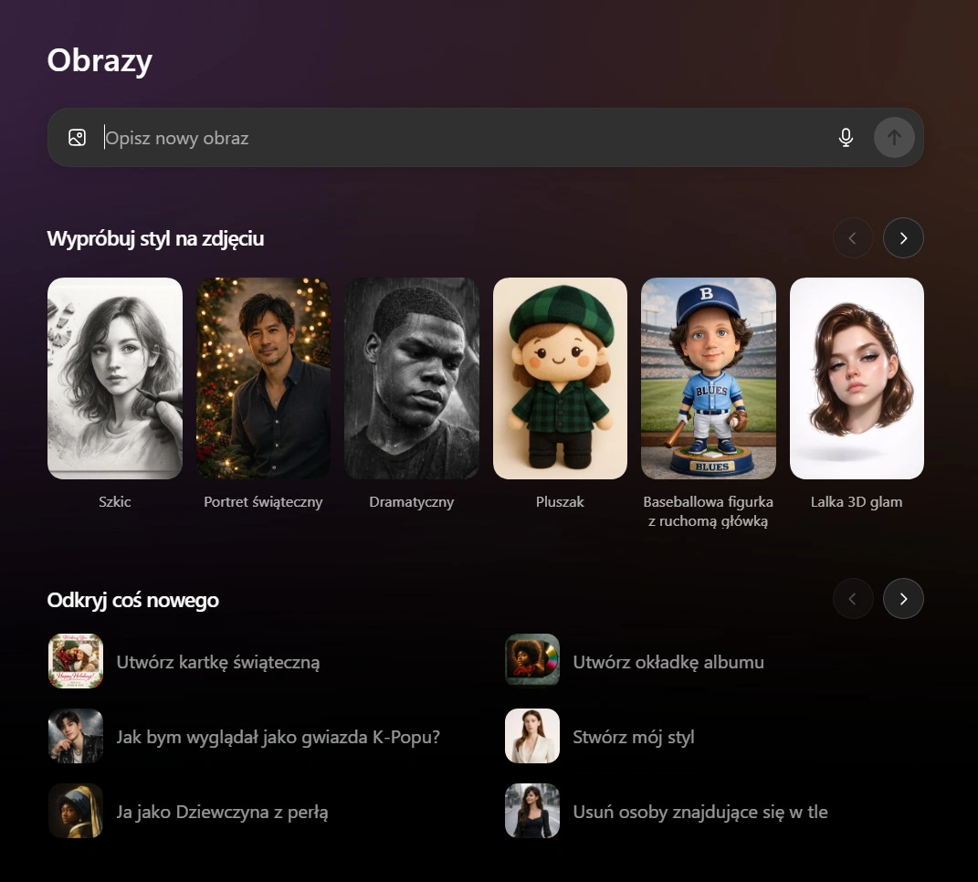 Równolegle z nowym modelem OpenAI przebudowuje sam interfejs ChatGPT. W bocznym pasku aplikacji - zarówno w wersji webowej, jak i mobilnej - pojawiła się osobna sekcja "Obrazy", opisywana przez firmę jako coś w rodzaju kreatywnego studia. Użytkownicy dostają dostęp do gotowych filtrów i inspirujących promptów, które można uruchomić nawet bez wpisywania własnego opisu.