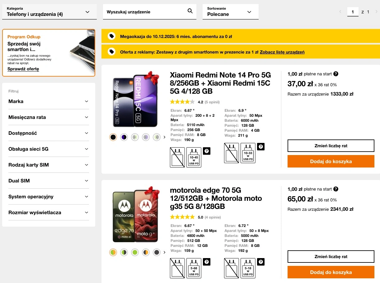 - motorola edge 70 5G 12/512 GB + motorola g35 5G 8/128 GB za 1 zł (+VAT);