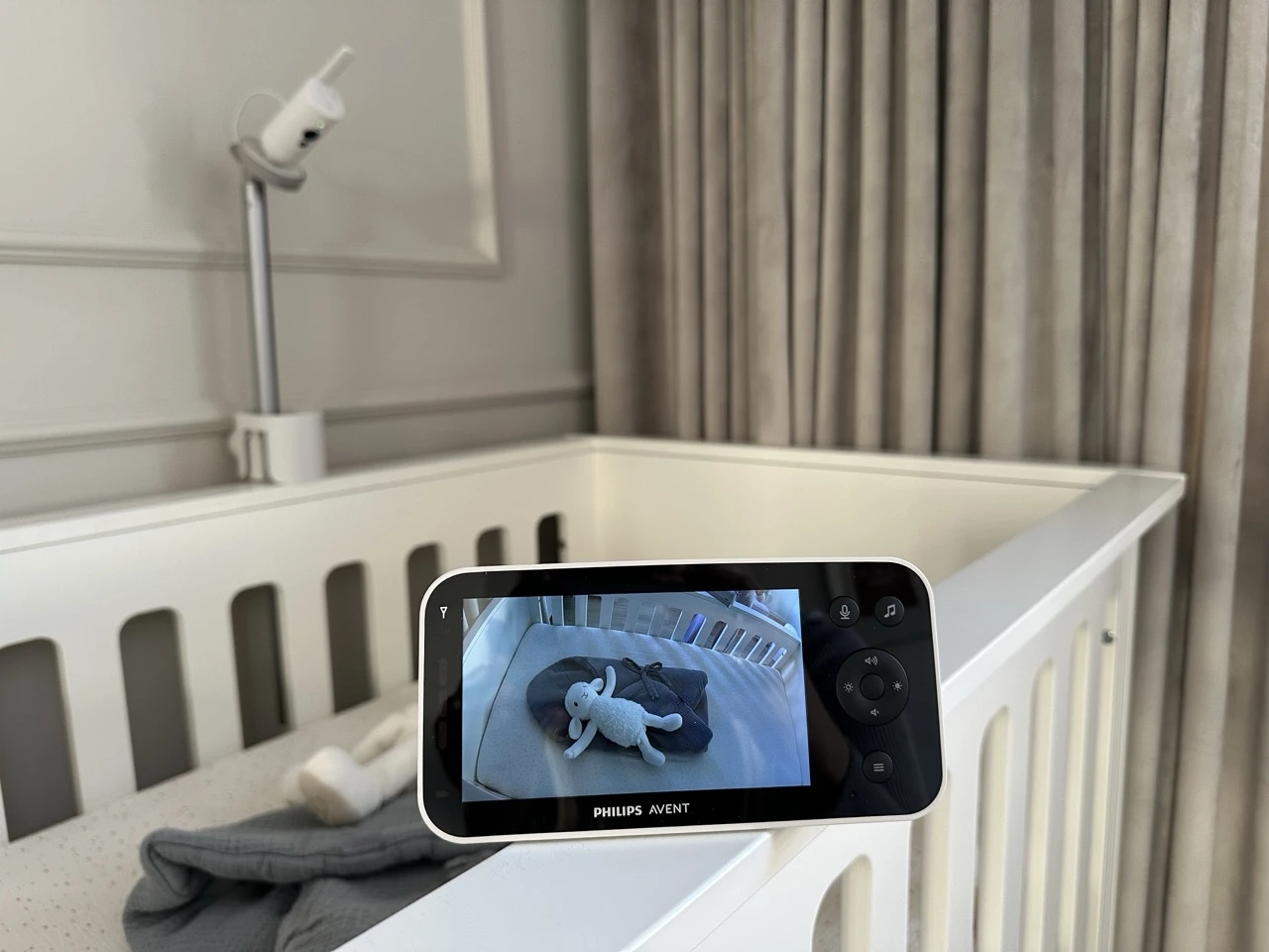 Ten sprzęt to „gamechanger” dla młodych rodziców. Podczas gdy oglądamy film, mamy obok drugie „kino” w postaci estetycznego urządzenia z pięciocalowym ekranem. Wystarczy jedno krótkie spojrzenie, żeby zobaczyć, czy mała śpi spokojnie, czy zaczyna się wiercić.
