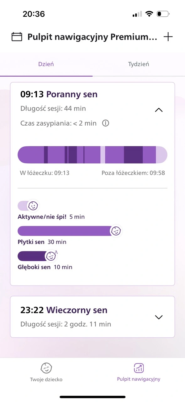 Gdy dostępne jest Wi-Fi, można równolegle korzystać z aplikacji, która oprócz bieżącego obrazu zapisuje także dane o śnie i oddechu z ostatnich trzydziestu dni. To pozwala zobaczyć, jak układa się rytm nocy, o której godzinie dziecko najczęściej się przebudza i jak zmieniają się całe cykle. Jeśli internet się wyłączy - albo zwyczajnie chcemy odłożyć telefon i odciąć się od powiadomień, bo np. chcemy zająć się gośćmi - nadal mamy pod ręką fizyczny odbiornik, który działa niezależnie.