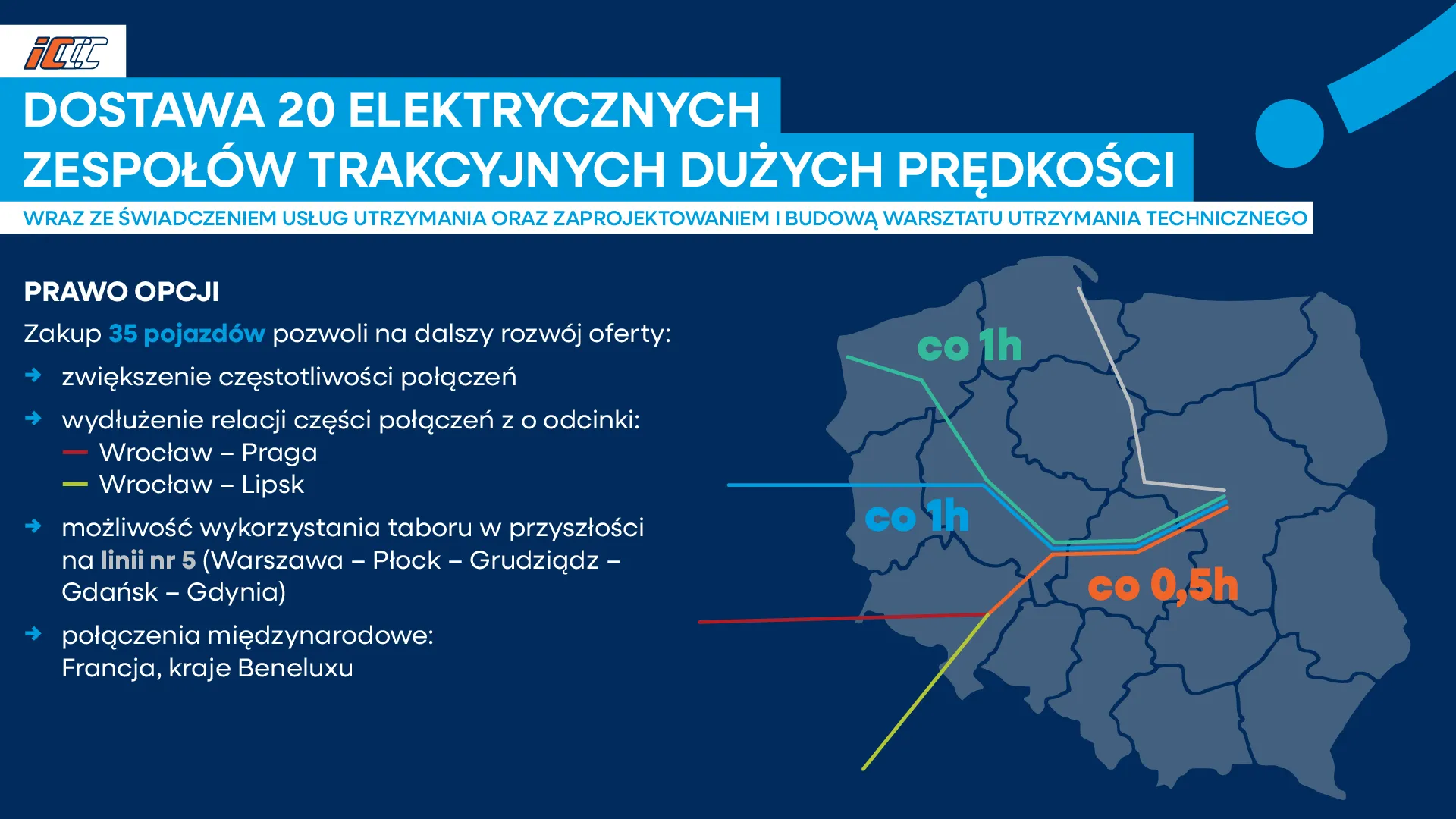 W ramach rozwoju siatki połączeń analizowane jest także wydłużenie części kursów – w cyklu czterogodzinnym lub dwugodzinnym – o dalsze odcinki międzynarodowe, w tym w relacjach Warszawa – Łódź – Wrocław – Praga oraz Warszawa – Łódź –Wrocław – Lipsk. Dodatkowo rozważana jest możliwość wykorzystania taboru dużych prędkości w przyszłości również na planowanej nowej linii kolejowej nr 5 w relacji Warszawa – Płock – Grudziądz – Gdańsk – Gdynia, co mogłoby wzmocnić ofertę szybkich połączeń Warszawy z Trójmiastem na nowej infrastrukturze – zapowiada przewoźnik.