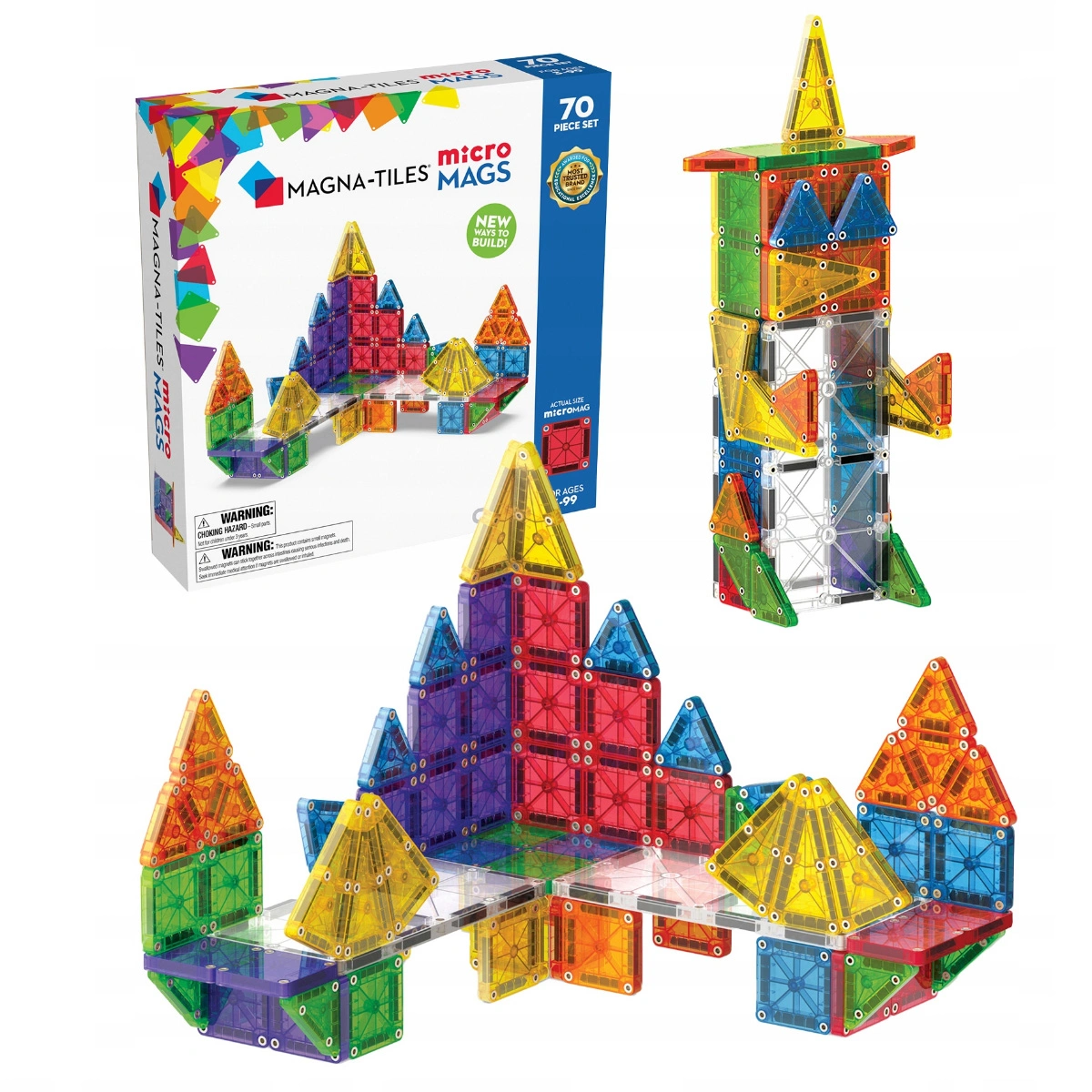 Magna Tiles to magnetyczne płytki konstrukcyjne zaprojektowane w celu pobudzenia kreatywności, koordynacji ręka-oko i umiejętności motorycznych u dzieci. Zestaw microMAGS zawiera 70 elementów, które są o 75 proc. mniejsze niż tradycyjne Magna Tiles, ale w pełni kompatybilne z pozostałymi zestawami takimi jak Magna Tiles Combo, Magna Tiles Castle czy Magna Tiles Arktyczne zwierzęta. Wykonane z nietoksycznego plastiku MABS, płytki są bezpieczne, trwałe i idealne dla dzieci w wieku od 3 lat.