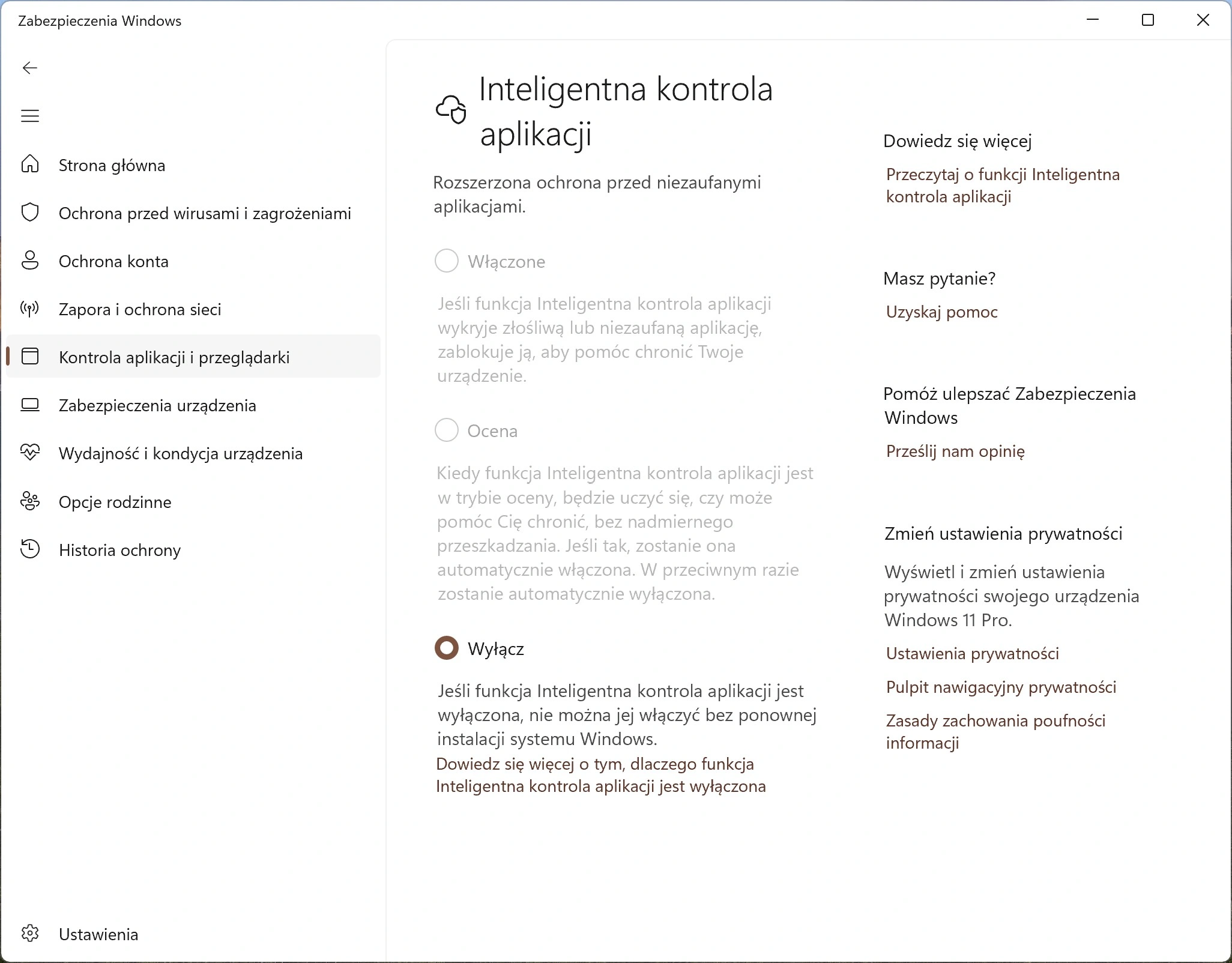 Do niedawna Smart App Control działał w trybie ewaluacji. Windows obserwował, czy użytkownik faktycznie potrzebuje tej funkcji, a jeśli tak - włączał ją na stałe. Problem pojawiał się w momencie, gdy ktoś chciał ją wyłączyć. Decyzja była niemal nieodwracalna: powrót wymagał czystej instalacji systemu.