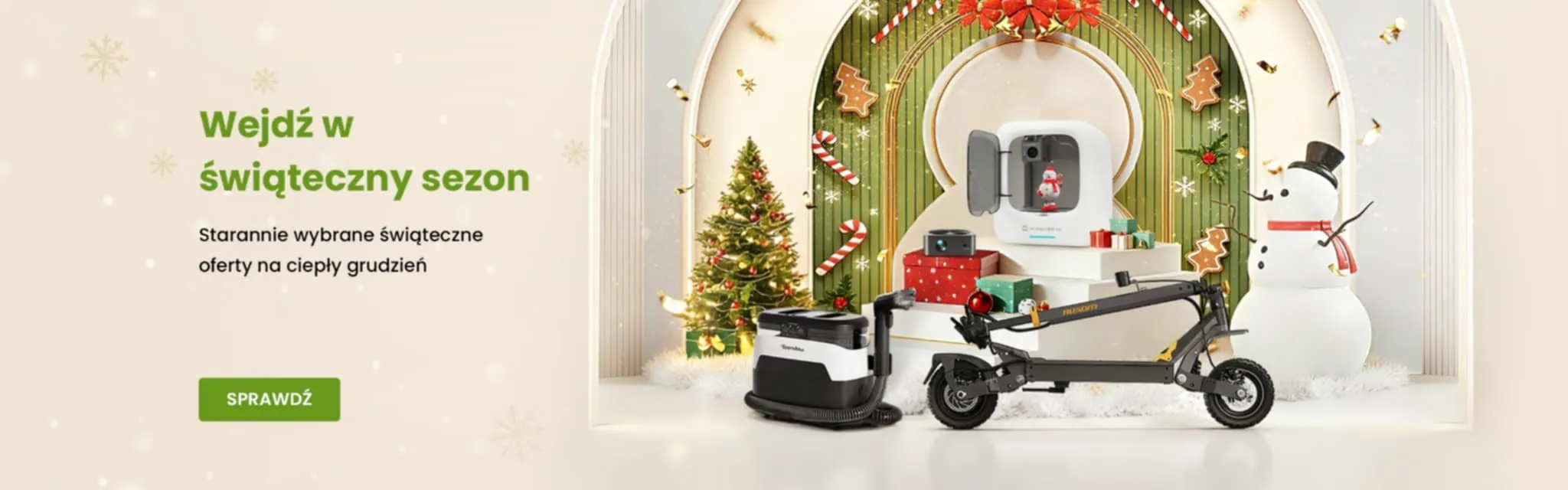 W świątecznej ofercie sklepu Geekbuying znajdziecie elektryczne hulajnogi i rowery, profesjonalne ekspresy do kawy dla koneserów małej czarnej, sprzęt fitness dla realizujących noworoczne postanowienia, zaawansowaną elektronikę komputerową, monitory gamingowe dla graczy, drukarki 3D dla kreatywnych dusz, projektory do domowego kina oraz urządzenia dla majsterkowiczów. Co więcej, wszystkie promocje zostały zebrane na dedykowanej stronie kampanii, gdzie możecie na bieżąco śledzić nowe oferty i korzystać z kuponów zniżkowych: