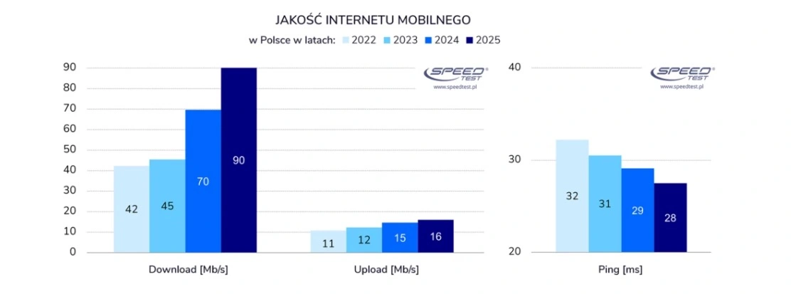 W 2025 r. internet mobilny w Polsce znacząco przyspieszył. Kilka lat temu mogliśmy pomarzyć o tak szybkim połączeniu w telefonie.