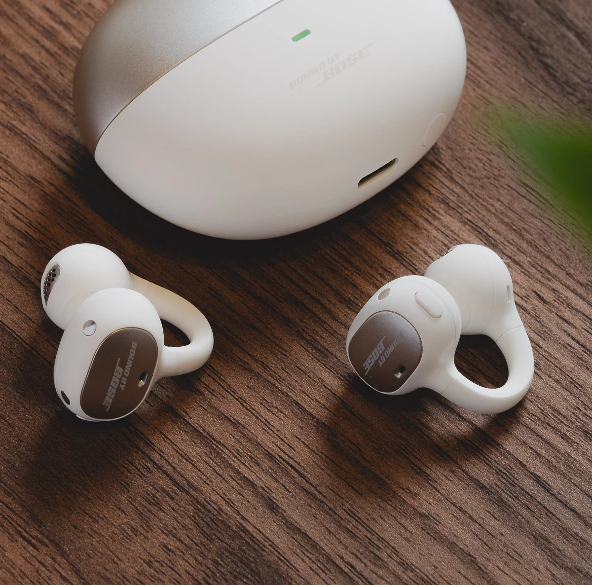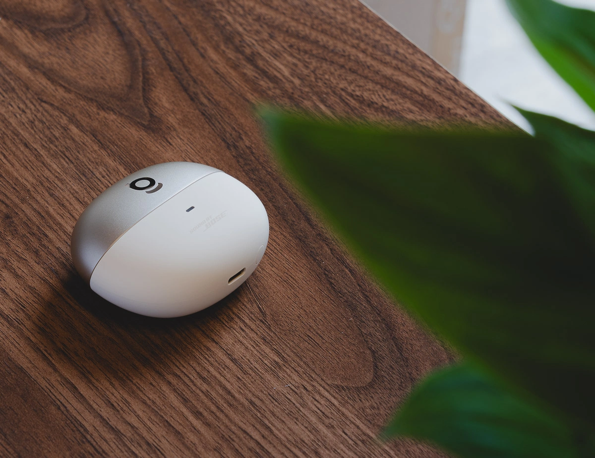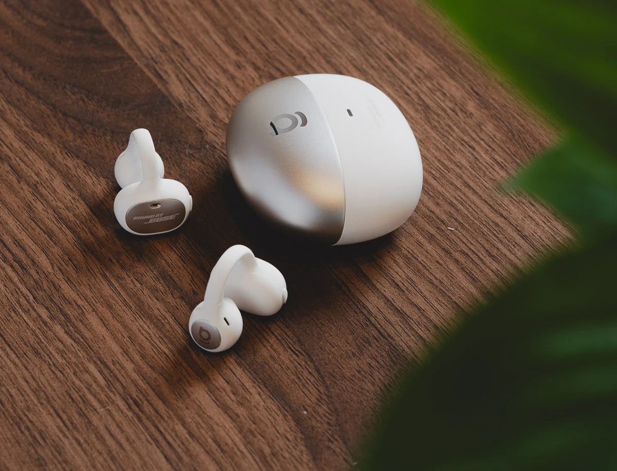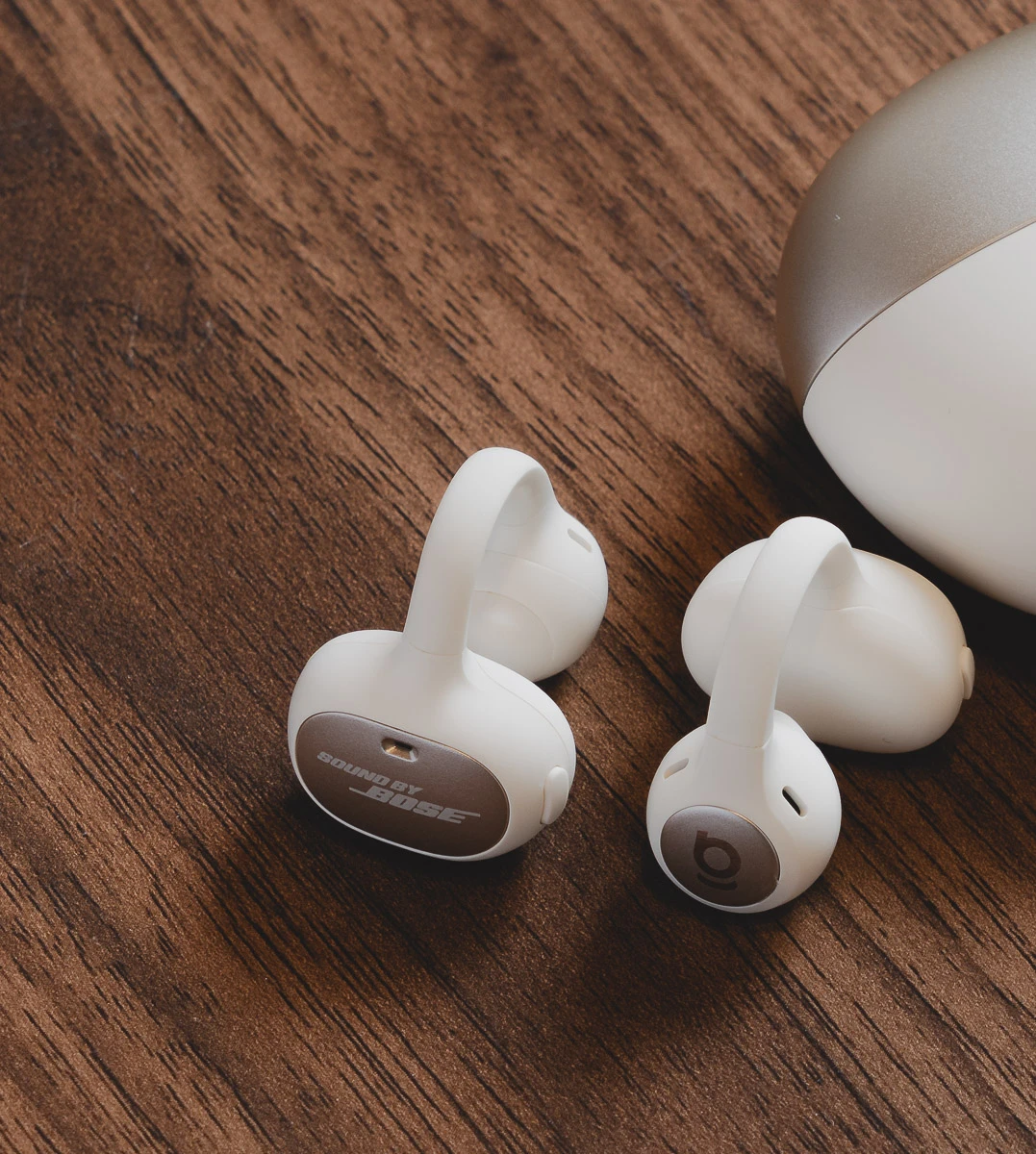Żadnych dodatkowych pałąków, żadnych zaczepów "nad" uszy, nic. Tylko i wyłącznie jeden elementem, który wciskamy za ucho (ten większy, z logo Sound by Bose) i jeden - mniejszy - który właściwie nakładamy na ucho od wewnętrznej strony.