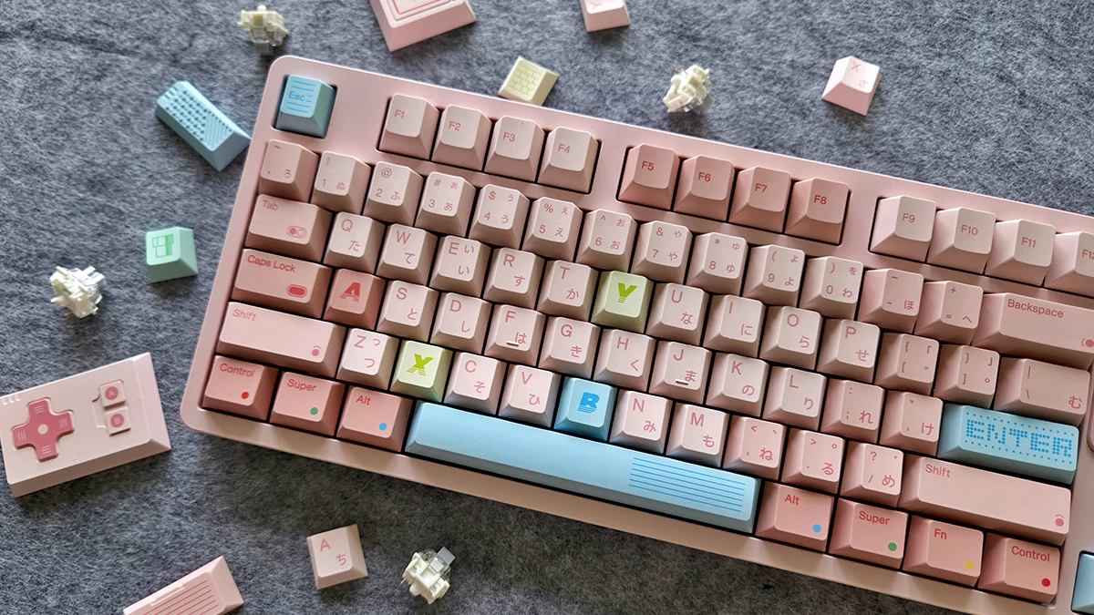 Chyba nigdy wcześniej nie zobaczyłam zestawu klawiszy, który tak bardzo skradłby moje serce. Nietypowy, retro, pełen nawiązań do Nintendo i to różowy! Dobiłam umowy z moją świadomością i wiedziałam, że jeżeli kiedyś zbuduję klawiaturę, to będzie ona na klawiszach 80Retros GAME 1989 Candy. Pomysł jednak wrócił do szuflady świadomości i pozostał w niej aż do końca 2025 roku.