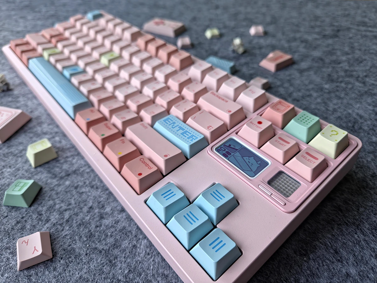 Za narodziny mojej nowozbudowanej klawiatury uznaję rok 2024. Wtedy szukałam jakiegoś przedmiotu na Aliexpress i chiński algorytm – jak to chiński algorytm – podsunął mi coś co mogłoby mi się spodobać, a nie było związane z wynikami wyszukiwania. Był to zestaw klawiszy ("keycapów") 80Retros Win 1998, który z miejsca skradł mi serce estetyką i ikonografią żywcem wyciągniętą z Windowsa 98. Byłam nim zachwycona w każdym detalu, jednak prawdziwy zachwyt przyszedł kilka minut później gdy algorytm załapał, że spodobał mi się 80Retros Win 1998 i na fali tego "sukcesu" podsunął mi 80Retros GAME 1989 Candy.