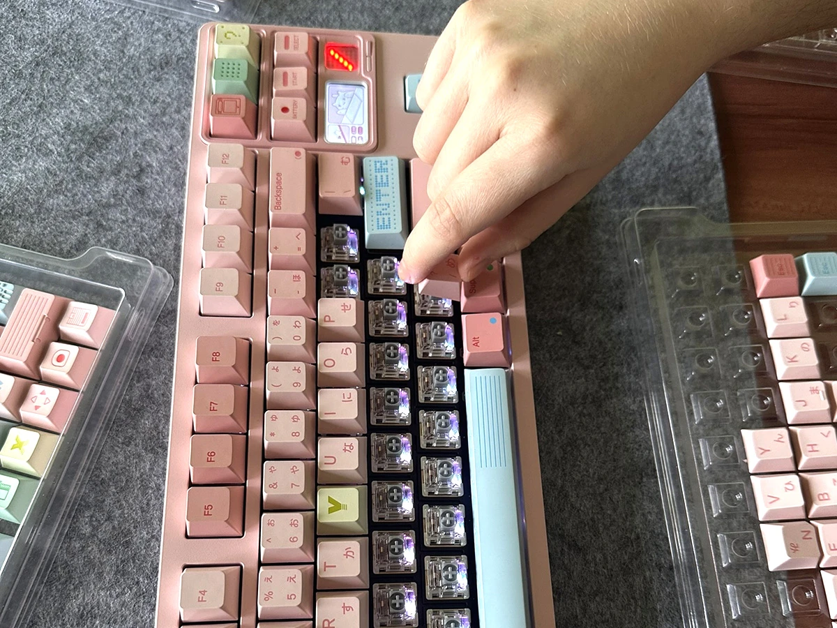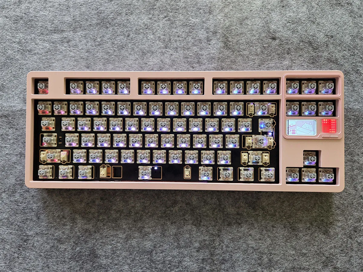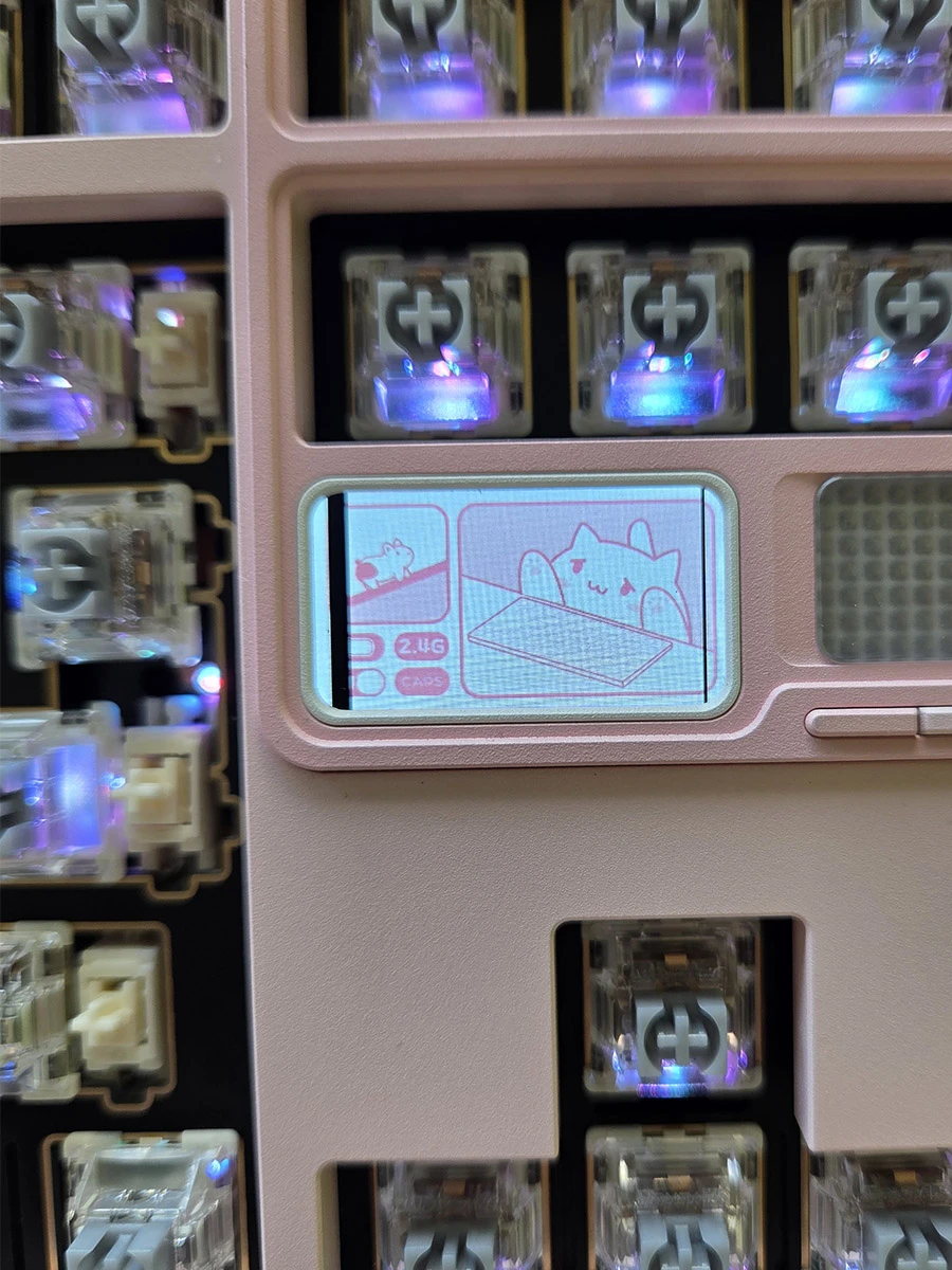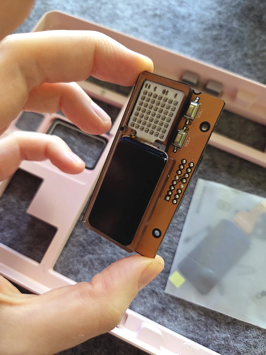 Z drugiej strony końcowa klawiatura jest spełnieniem moich najskrytszych klawiaturowych marzeń. Jest urocza, oryginalna, brzmi i daje jedyne w swoim rodzaju wrażenia z pisania. Zdecydowanie jest najlepszą klawiaturą na jakiekolwiek w życiu pisałam, a do tego stale towarzyszy mi świadomość, że jedyne co jest w niej przypieczętowane to kolor obudowy. Jeżeli odwidzi mi się motyw "różowy GameBoy", mogę kupić zestaw nowych klawiszy, wgrać na ekran nową animację, zmienić ustawienia oświetlenia i tym samym całkowicie zmienić jej charakter. Jeżeli z jakiegoś powodu odwidzi mi się wizja jej brzmienia czy to jak czuję ją pod palcami, mogę wymienić wszystkie przełączniki i pomieszać zestaw gąbek i warstw plastiku wewnątrz.