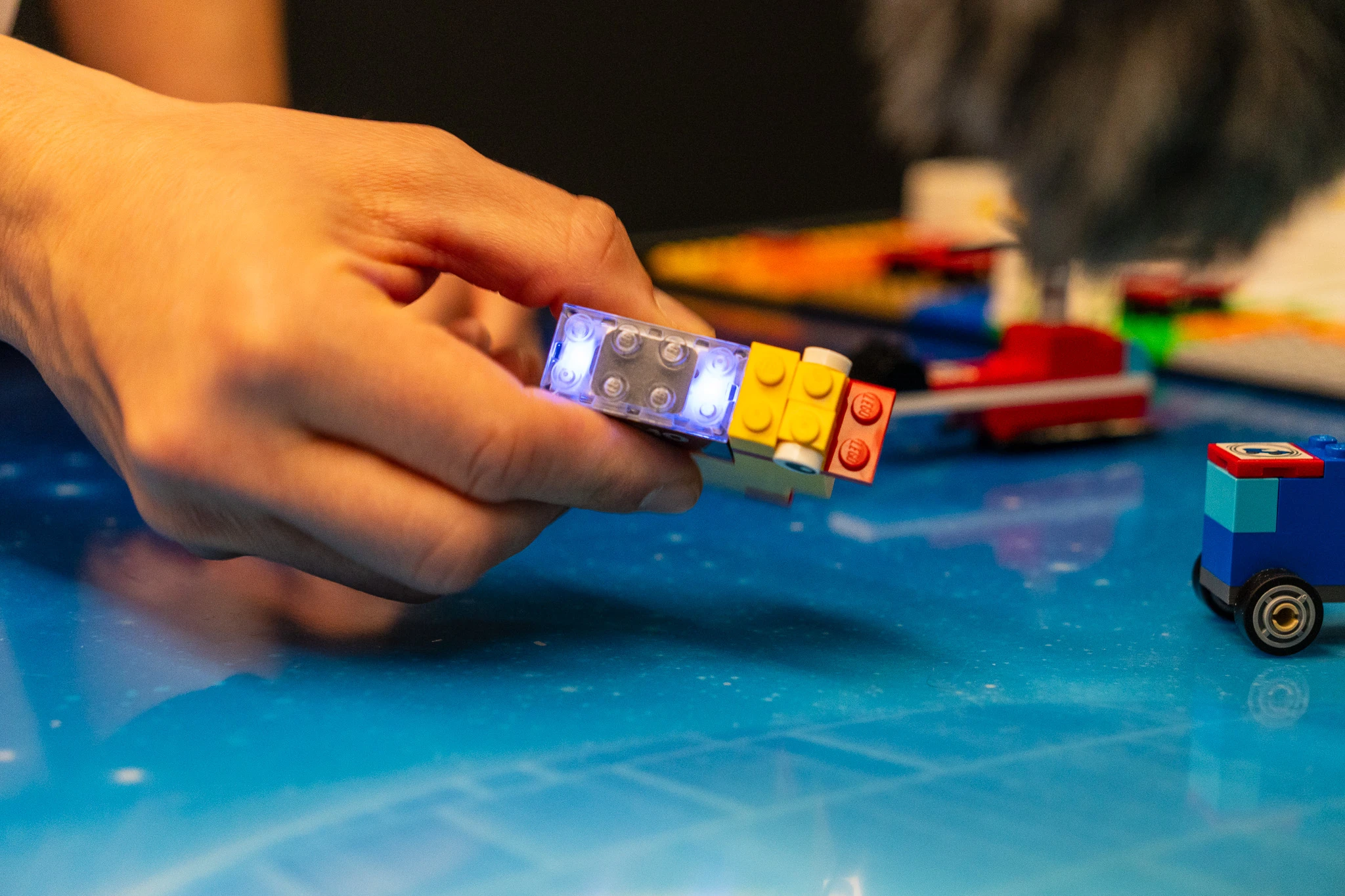 Podczas demo zobaczyłem, jak to wygląda w praktyce na przykładzie nowych zestawów Star Wars. Figurki Luke’a Skywalkera czy Dartha Vadera mają wtopione wewnątrz czipy z unikalnym ID. Gdy postawiłem Vadera obok SMART klocka, system natychmiast go rozpoznał, reagując charakterystycznym oddechem Lorda Sithów. Wszystko dzieje się lokalnie, bez opóźnień i bez konieczności konfiguracji Wi-Fi.