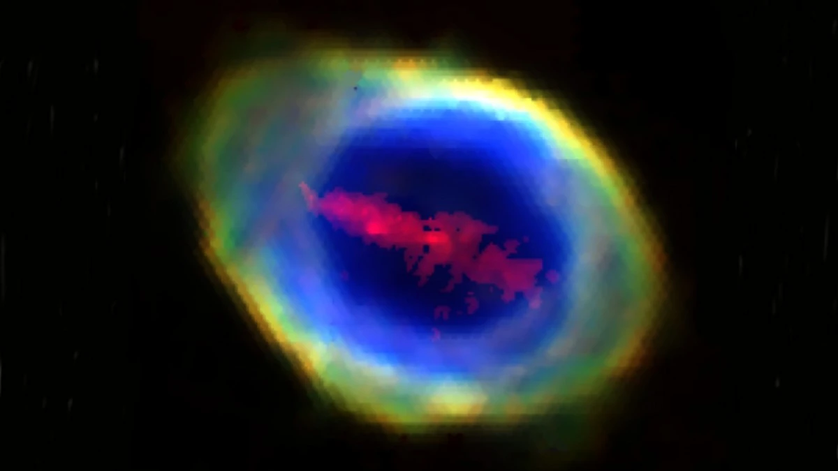 To, co naukowcy dostrzegli dzięki nowatorskim instrumentom, przypomina kształtem podłużną belkę lub pas i idealnie mieści się w wewnętrznej warstwie eliptycznej mgławicy. Choć na zdjęciach w podczerwieni czy świetle widzialnym mogło to umknąć naszej uwadze, dane spektralne nie pozostawiają złudzeń: w sercu Pierścienia leży chmura zjonizowanych atomów żelaza.