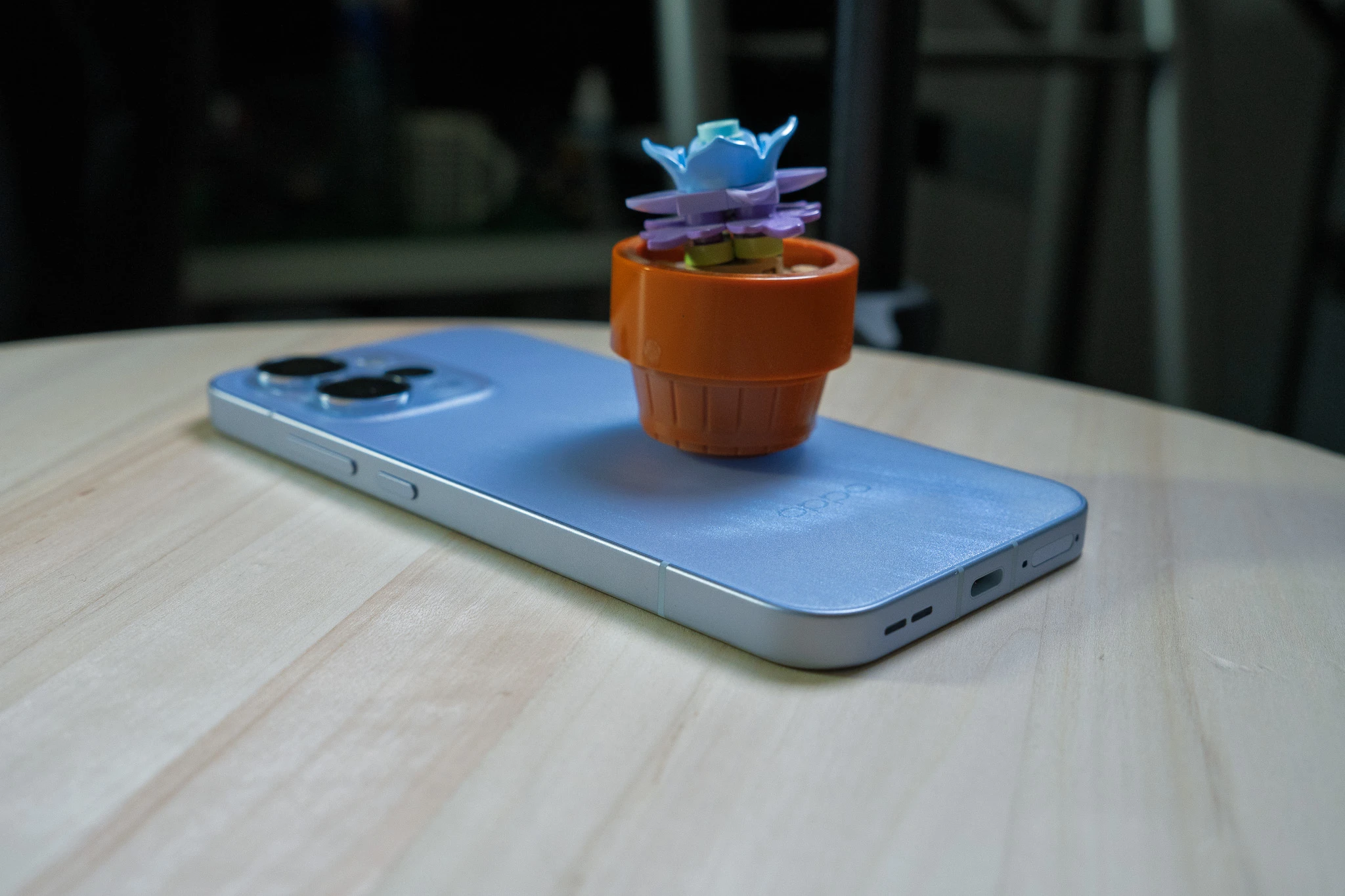 Pierwsze wrażenie z obcowania z telefonem jest pozytywne, choć także zaskakujące. Reno15 Pro leży w dłoni pewnie, a jego proporcje są odpowiednio wyważone. Waży 205 g przy grubości 7,7 mm - jest więc smukły, ale nie sprawia wrażenia delikatnego, czy kruchego.