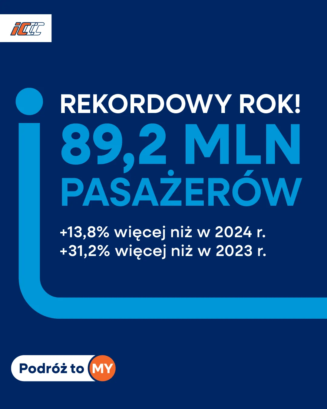 Rekord był jak w banku, o czym świadczyły wyniki w poszczególnych miesiącach, ale teraz mamy oficjalne potwierdzenie. PKP Intercity na spokojnie podliczyło pasażerów i z obliczeń wyszło, że przewiozło 89,2 mln podróżnych. To wynik o 13 proc. lepszy niż w 2024 r. i aż o 31 proc. wyższy niż dwa lata wcześniej.