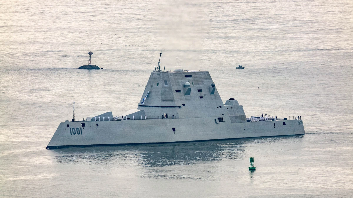 Problem polegał na tym, że przez lata jego główne uzbrojenie pozostawało bezużyteczne. Pierwotnie zainstalowane dwa systemy dział Advanced Gun System (AGS) kalibru 155 mm miały strzelać inteligentną amunicją na odległość ponad 100 km. Projekt jednak zarzucono, gdy okazało się, że jeden pocisk kosztuje blisko milion dolarów, niemal tyle, co pocisk manewrujący Tomahawk. Od czasu wejścia do służby w 2016 r. okręt był więc raczej ciekawostką i obiektem żartów.