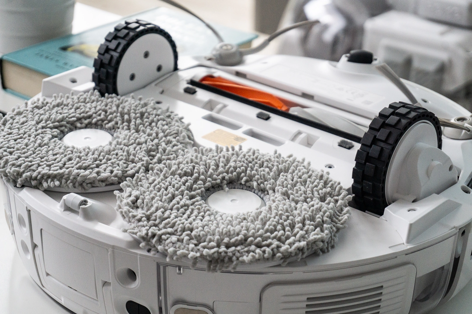 Za to mopowanie jest co najwyżej przeciętnie. Dwa wirujące talerze z materiałowymi frędzlami to w 2026 roku klasyka oczekiwana od średniej półki. Na tej wyższej – a tam cenowo leży DJI ROMO P – oczekuje się ciekawszych rozwiązań. Na przykład takich jak absolutnie kapitalna rolka taśmowa zaproponowana przez Narwala.