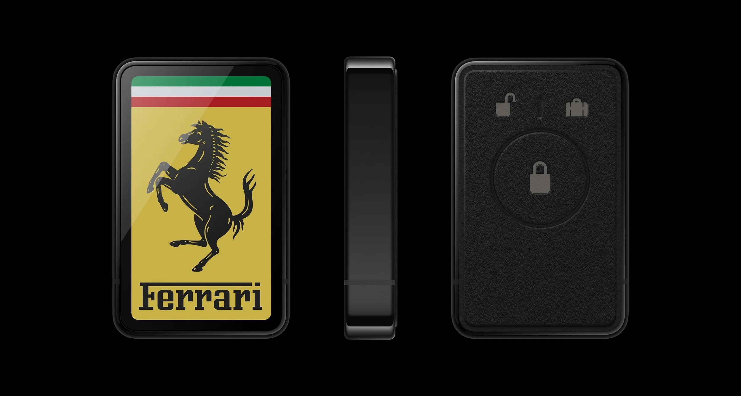 Klucz do samochodu wykonano ze szkła Corning Fusion5 Glass i wyposażono w wyświetlacz E Ink - w kieszeni jest żółty (kolor Ferrari), a po włożeniu do magnetycznego gniazda w konsoli zmienia kolor na czarny, inicjując sekwencję uruchamiania auta. To teatralne doświadczenie, które ma zastąpić emocje związane z odpalaniem silnika spalinowego.