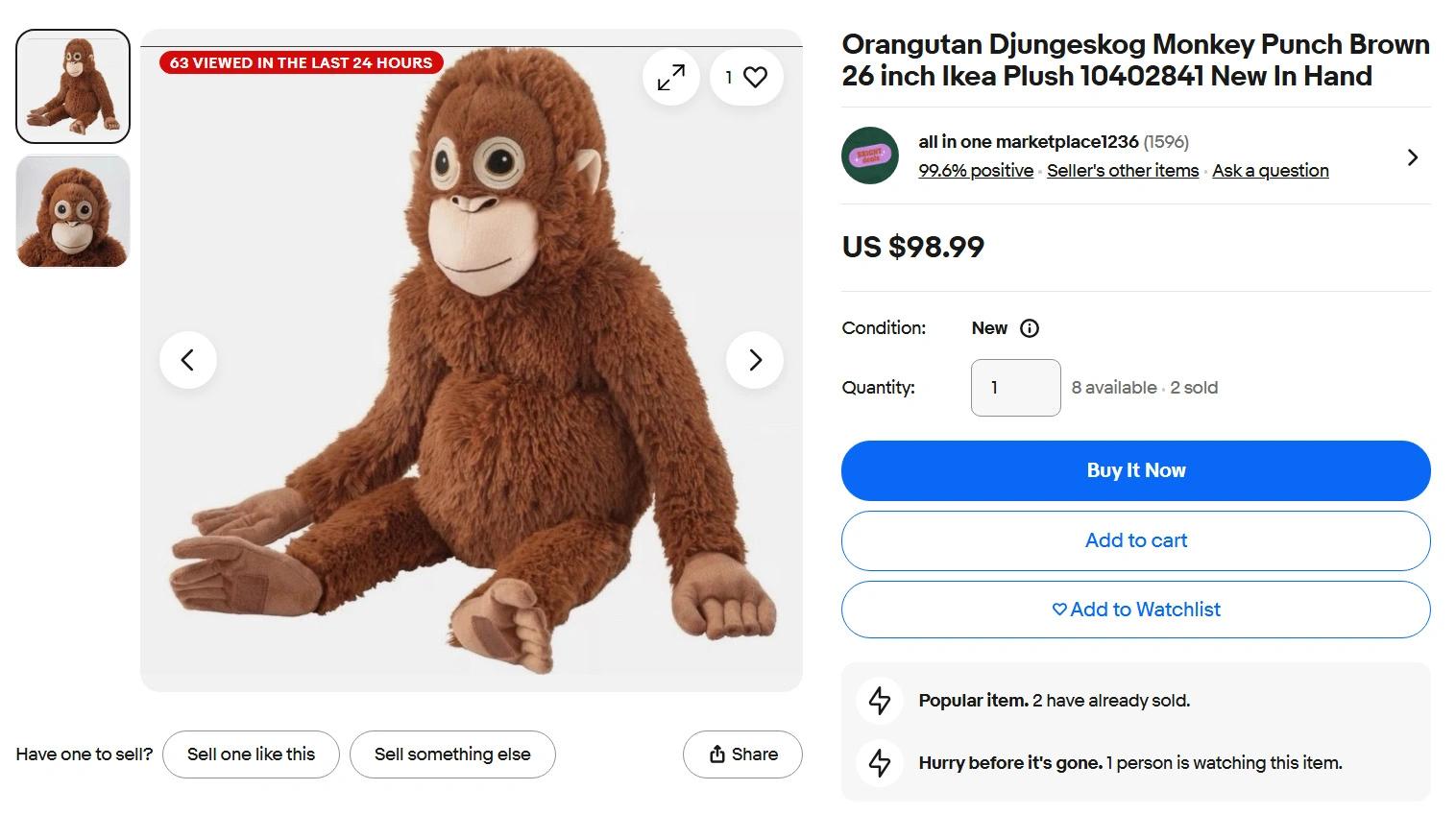 Wyszukując "Ikea Djungelskog" na Allegro wyszukiwanie zwróci ponad 400 wyników wyszukiwania pluszaków, z których większość sprzedała się ostatnio w jedno- lub dwu- cyfrowym nakładzie. Z wyjątkiem orangutana, który ostatnio kupiło 400 osób.