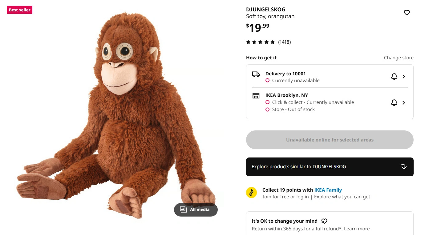 Obecnie orangutan Ikea Djungelskog w polskim sklepie internetowym Ikea ma status "Top-seller" i spośród 58 pluszaków jest jedynym, który ma etykietę "Chwilowo niedostępne z dostawą".