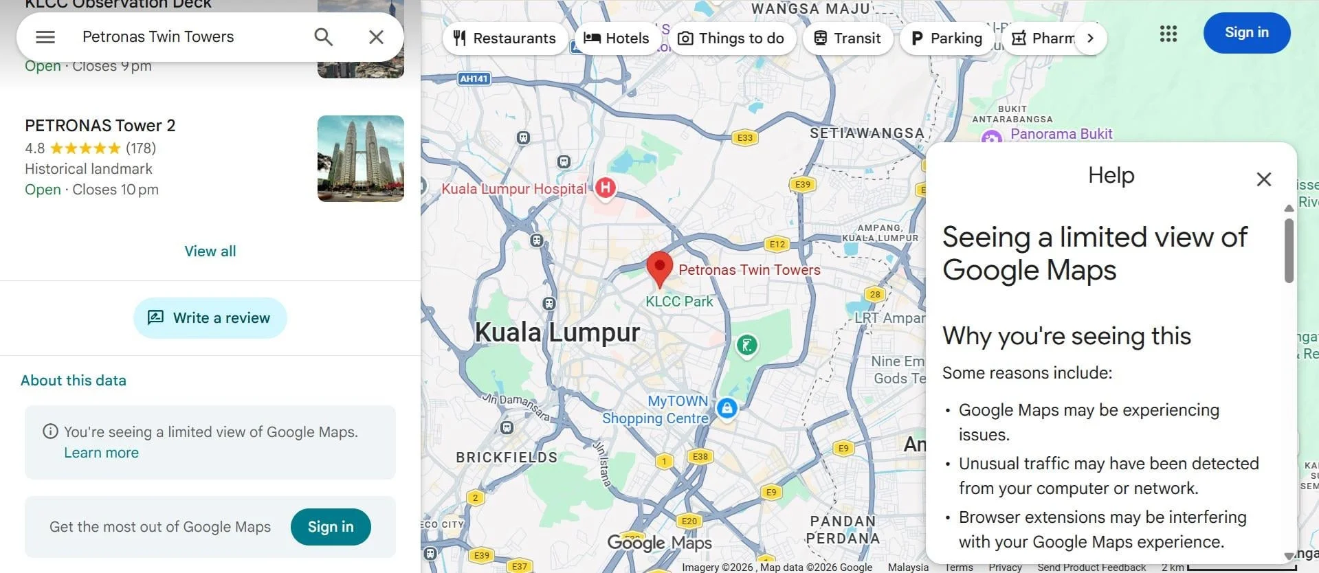 Na Reddicie zauważono, że niezalogowani użytkownicy podczas korzystania z Map Google widzą tzw. tryb ograniczonego widoku w formie wyskakującego okienka. Google twierdzi, że może to nastąpić: