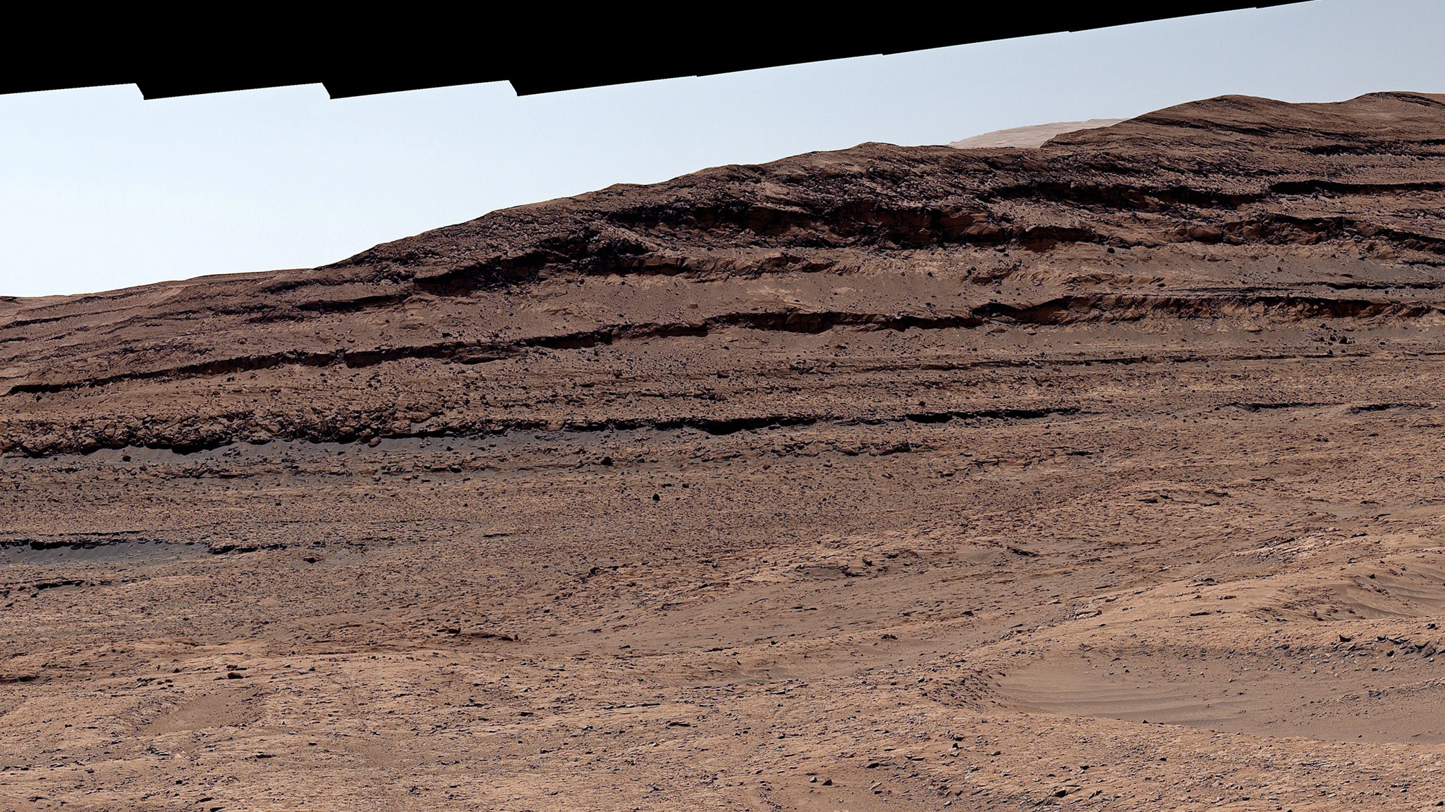 Każda z warstw tej góry to zapis innej epoki z dawnego, zmieniającego się klimatu planety. Zasadniczo im wyżej wjeżdża maszyna, tym bardziej krajobraz staje się wyschnięty, dokumentując proces powolnego zamierania rzek i jezior.