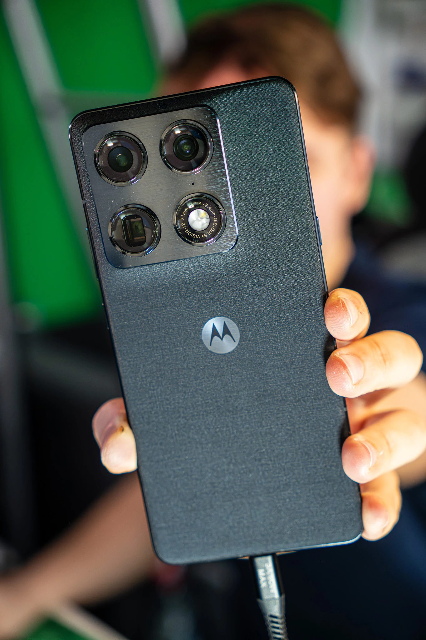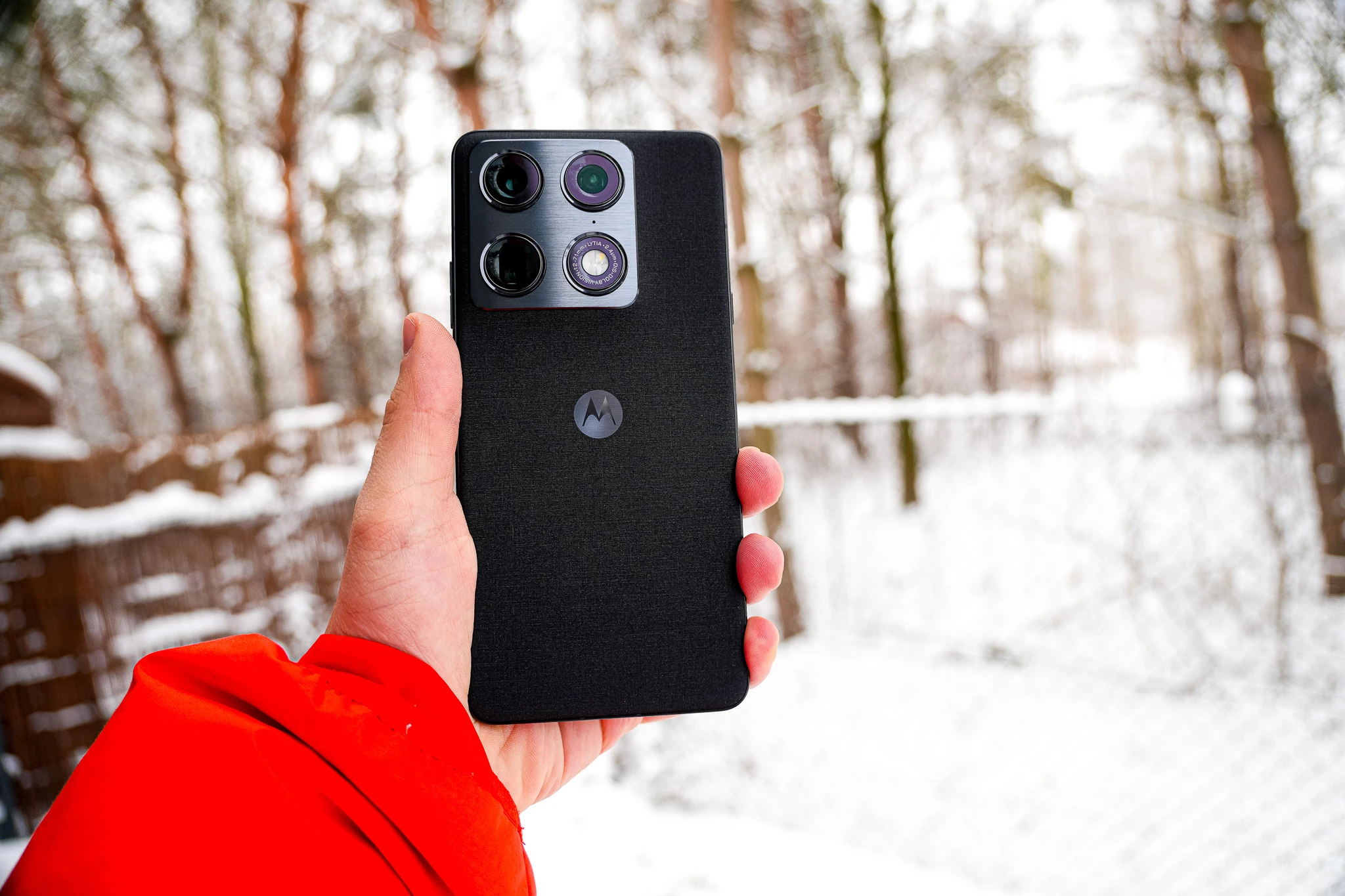 Zauważyłem jednak u niego specyficzny syndrom sobowtóra. Wyspa aparatów płynnie przechodzi w obudowę, a warianty wykończenia (Martini Olive, zieleń i Carbon, czarny) przypominają w dotyku gęstą tkaninę. Wizualnie nawiązuje to jednak zbyt mocno do znacznie tańszych modeli z serii Edge, chociażby Edge 50 Neo.