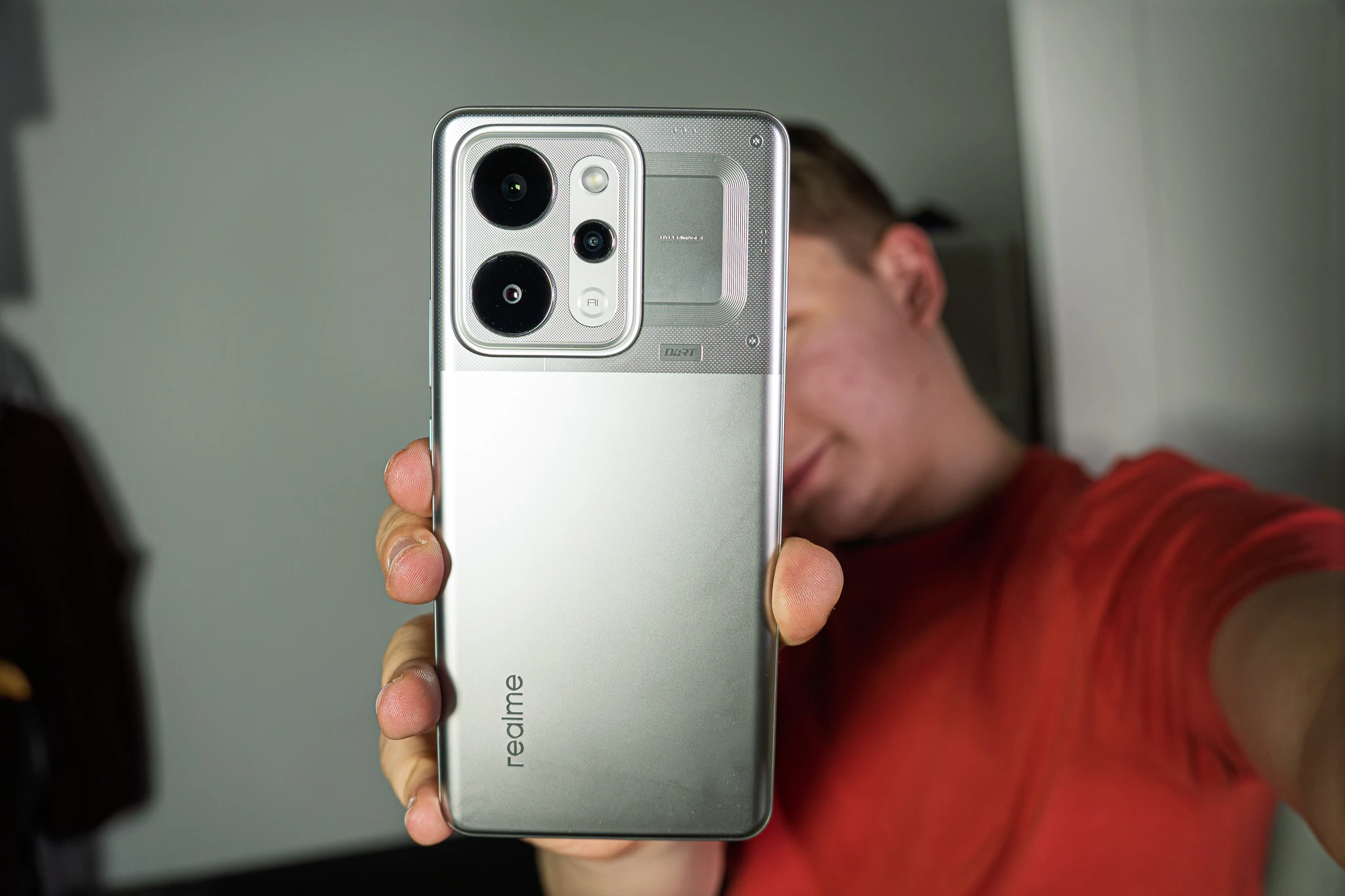 Przezroczysta sekcja przy aparacie o nazwie TransView wygląda intrygująco na renderach, ale w rzeczywistości szybko zbiera odciski palców i traci swój urok. Certyfikat IP69 oznaczający odporność na mycie ciśnieniowe to jednak potężny atut, który realnie podnosi wartość użytkową tego woła roboczego. Ot, realme stworzyło idealny telefon dla osób pracujących fizycznie bez tej całej otoczki rugged phone, czy cegły-telefonu.