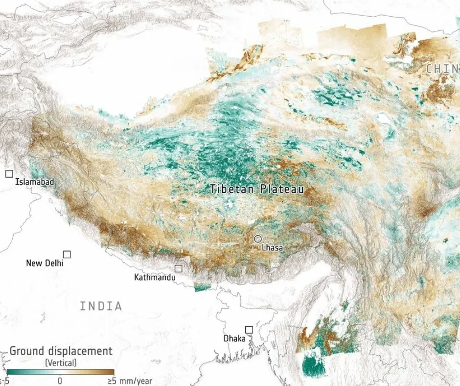 Z połączenia tych dwóch źródeł danych powstała mapa prędkości ruchu Tybetu, w której każdy piksel ma przypisaną wartość w milimetrach na rok. Widać na niej, jak wschodnia część płaskowyżu przesuwa się na wschód nawet o 25 mm rocznie, podczas gdy inne fragmenty poruszają się wolniej, a jeszcze inne w przeciwnym kierunku.