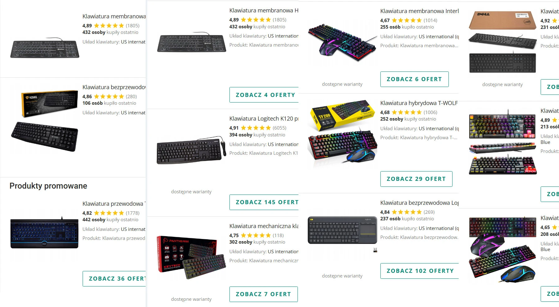 Szczególnie ta ostatnia kwestia – wyraz osobowości – jest (nie)widoczna w przypadku gotowych modeli. Wystarczy zajrzeć do oferty dowolnej platformy sprzedażowej, sklepu internetowego czy elektromarketu: krajobraz jest niemal monochromatyczny. Długie rzędy czarnych i białych klawiatur przerywają pojedyncze modele popularnych marek oraz coraz popularniejsze chińskie hotswapy – czyli klawiatury mechaniczne, w których można wymieniać przełączniki i nakładki na klawisze. To jednak wciąż nisza. Rynek jest tak bardzo nasycony czernią i bielą, że próba znalezienia czegoś bardziej wyrazistego szybko kończy się znudzeniem przy około 150 produkcie na liście wyświetlanych.