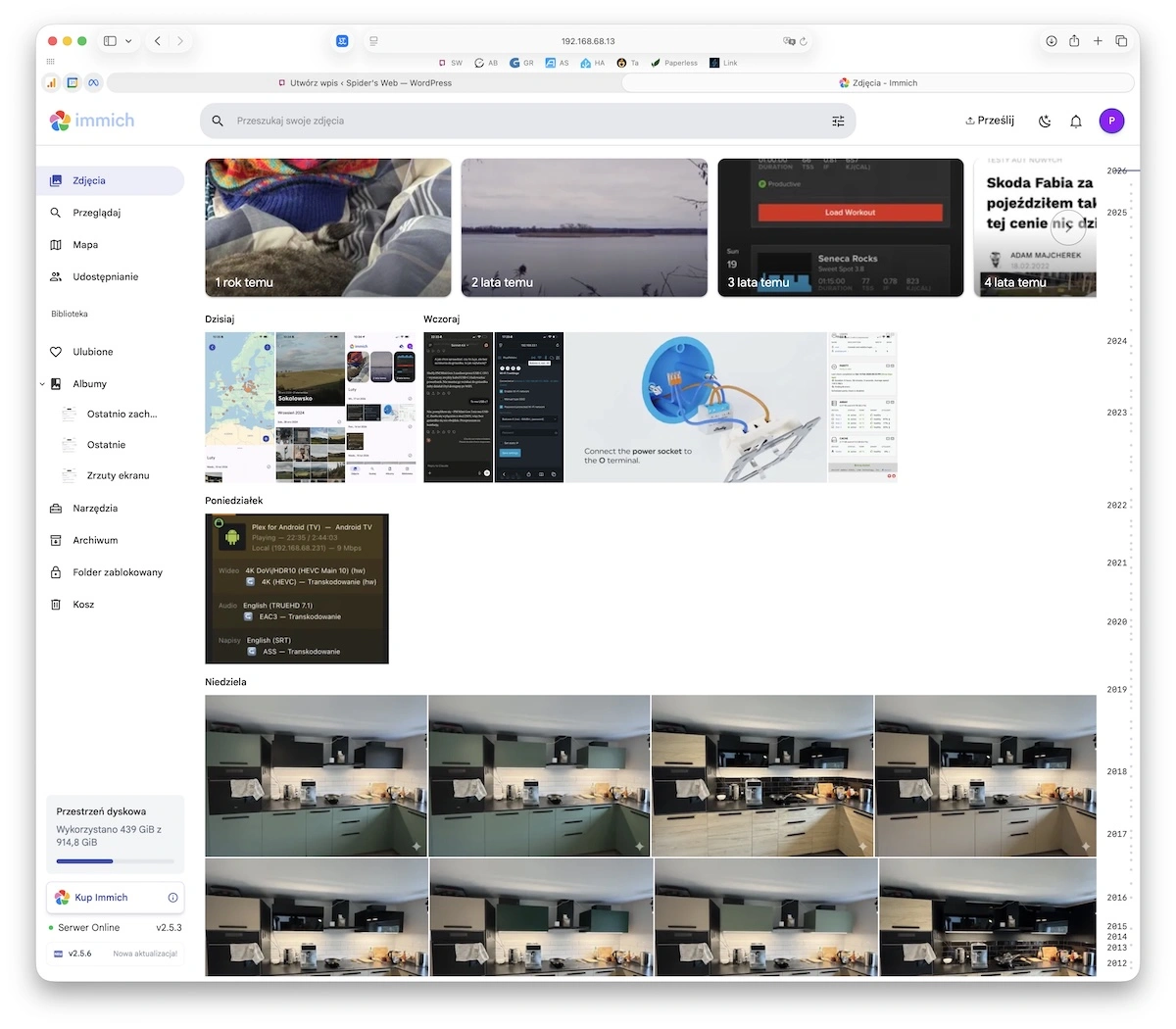 Ale na koniec dnia odpalam Immicha dokładnie tak samo, jak odpalałem Zdjęcia Apple'a, robię dokładnie to, co robiłem w tych Zdjęciach i tyle. A wszystko to z przyjemną świadomością, że to wszystko w jakimś stopniu działa dzięki mojemu wysiłkowi - i że wiem doskonale, gdzie są moje zdjęcia.