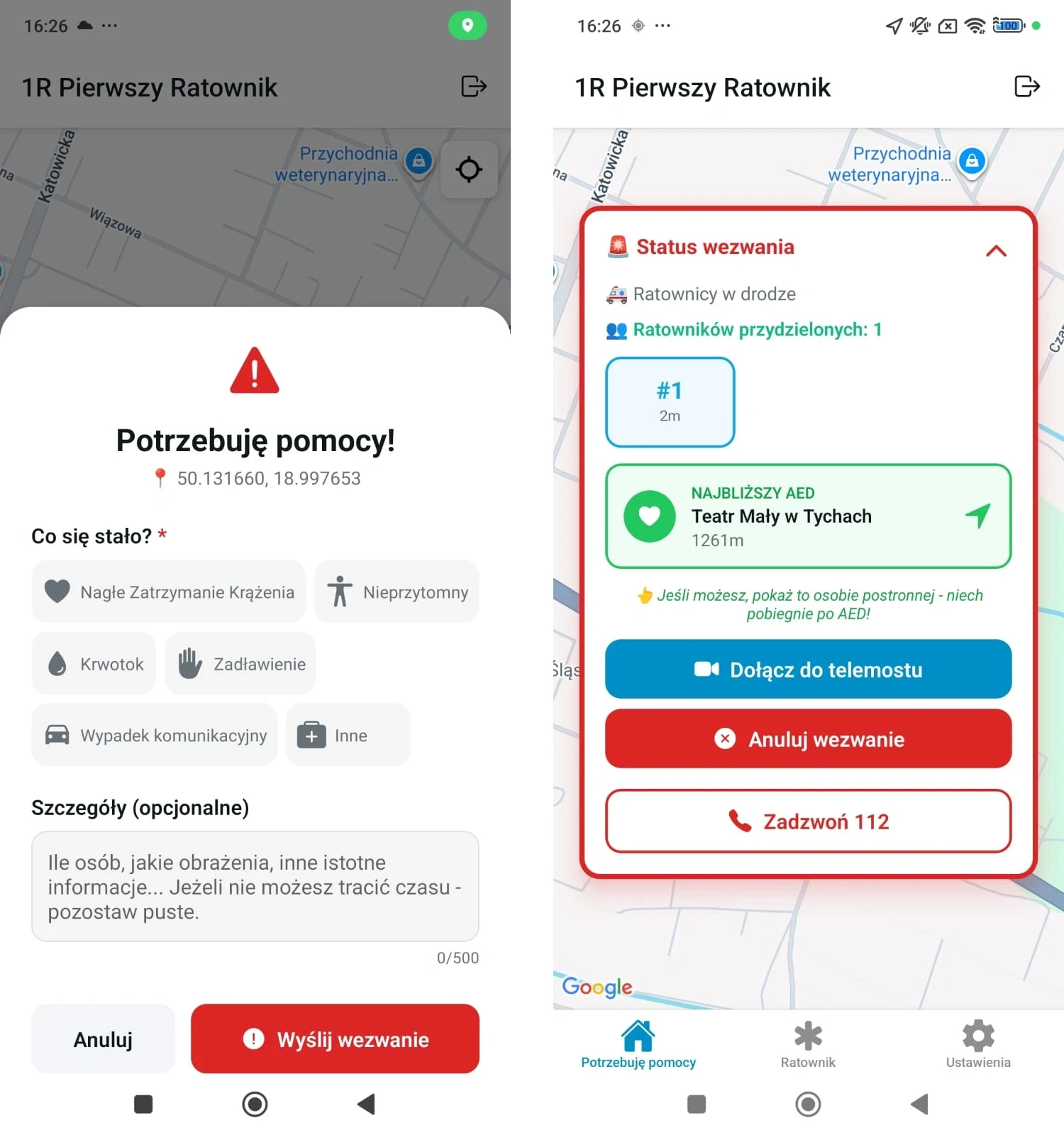 Pierwszy Ratownik to darmowa aplikacja, która uzupełnia system ratownictwa medycznego o lokalnych ochotników. Dzięki niej w minutę zaalarmujesz pobliskich ratowników, zadzwonisz po pomoc i znajdziesz najbliższy defiblyrator AED.