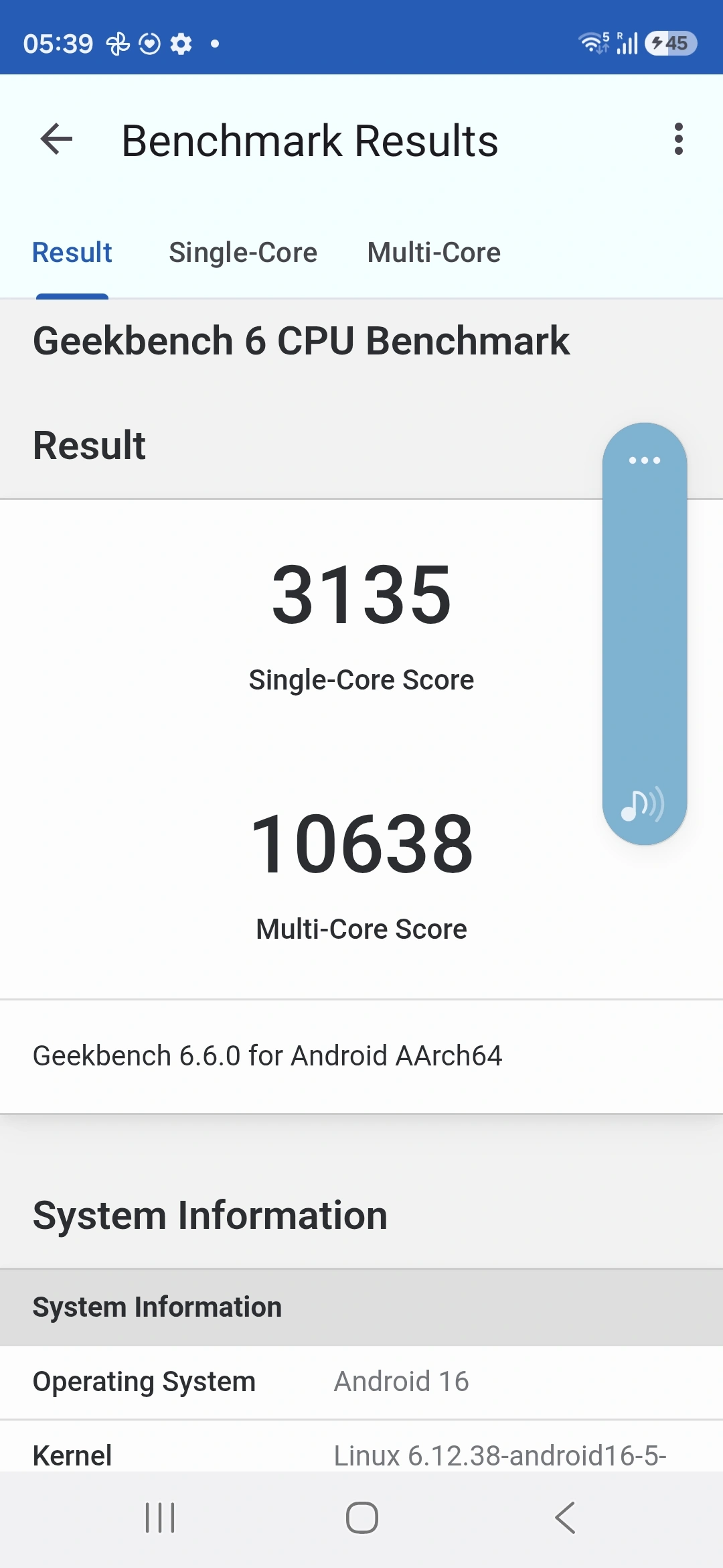 Wyniki w aplikacji Geekbench są konkretne: około 3100 punktów w teście single-core i 10600 w multi-core. Układ Apple A19 osiąga około 3600 punktów jednordzeniowo. Apple jest wyraźnie szybszy w generowaniu czystej mocy obliczeniowej i nie zamierzam z tym polemizować.
