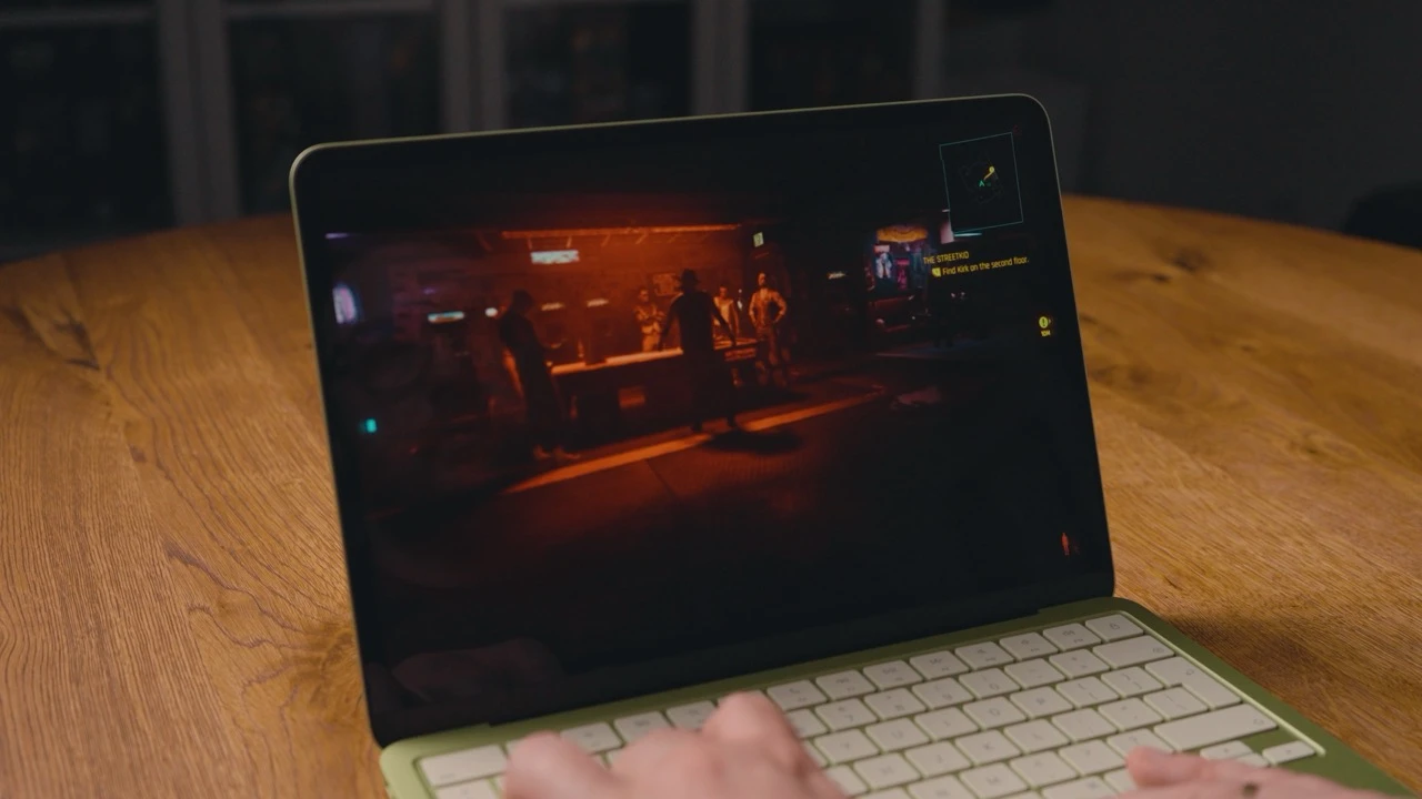 Podkreślam przy tym, że to nie jest maszyna skrojona pod tego typu zadania, no ale sobie z nimi radzi - podobnie jak z odpalaniem gier wideo! Udało mi się uruchomić na tym komputerze z procesorem rodem z telefonu nawet natywną wersję Cyberpunka 2077 na macOS-a; oczywiście w niskich detalach i bez pełnej płynności, no ale i tak robi wrażenie, że dało się tę produkcję uruchomić.