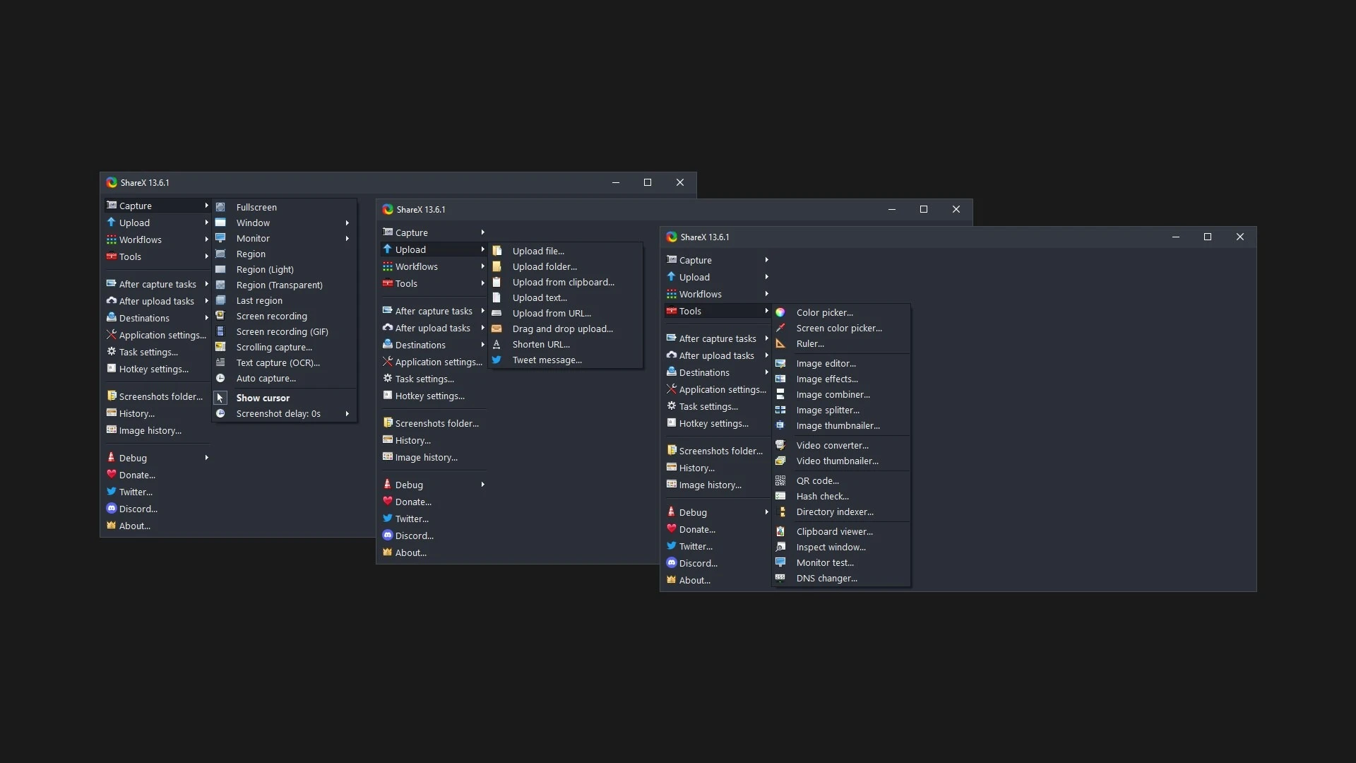 ShareX to darmowy, open-source’owy kombajn do przechwytywania ekranu. Oprócz zrzutów oferuje również nagrywanie wideo z wykorzystaniem FFmpeg.