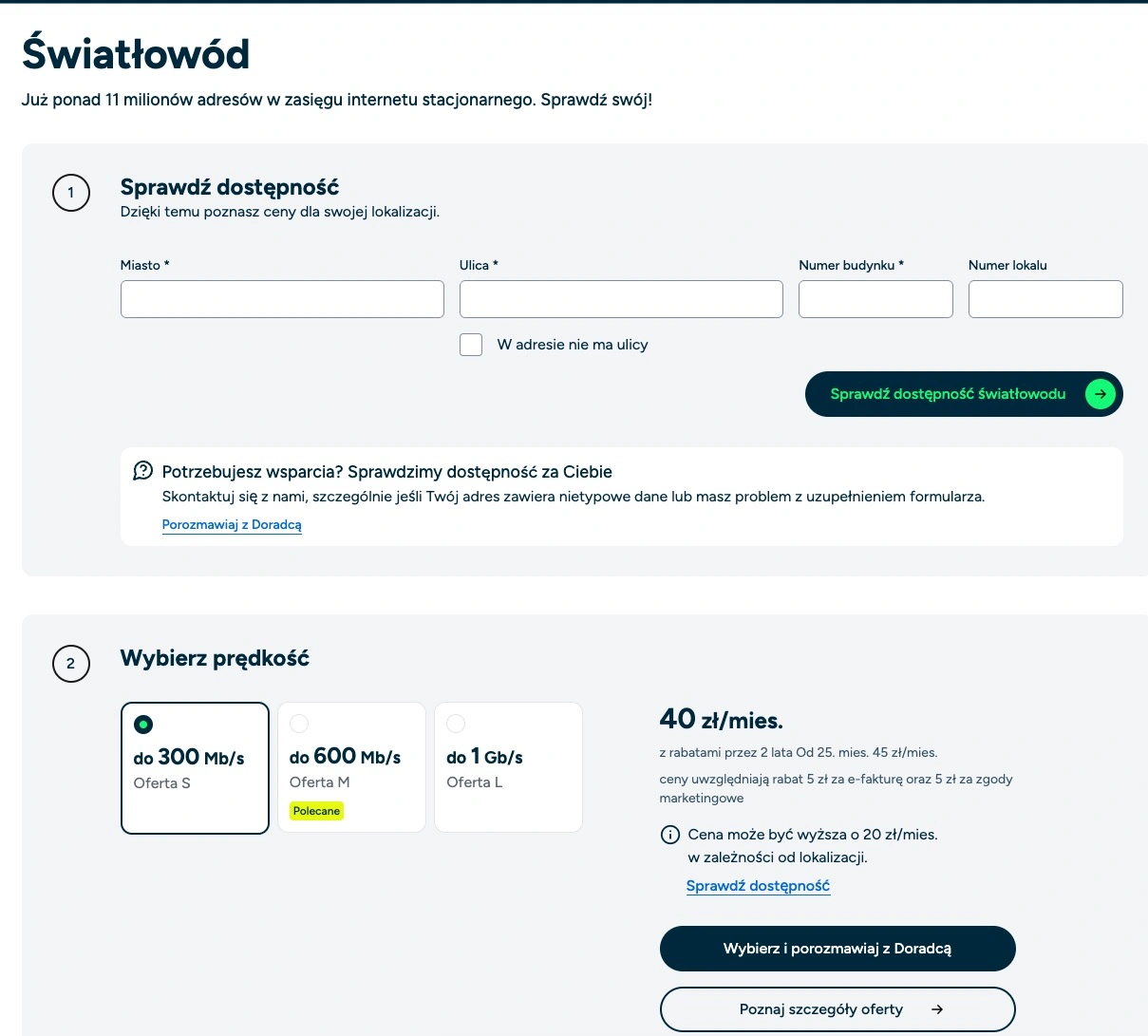 Krok 1: sprawdzenie dostępności światłowodu w domu jednorodzinnym