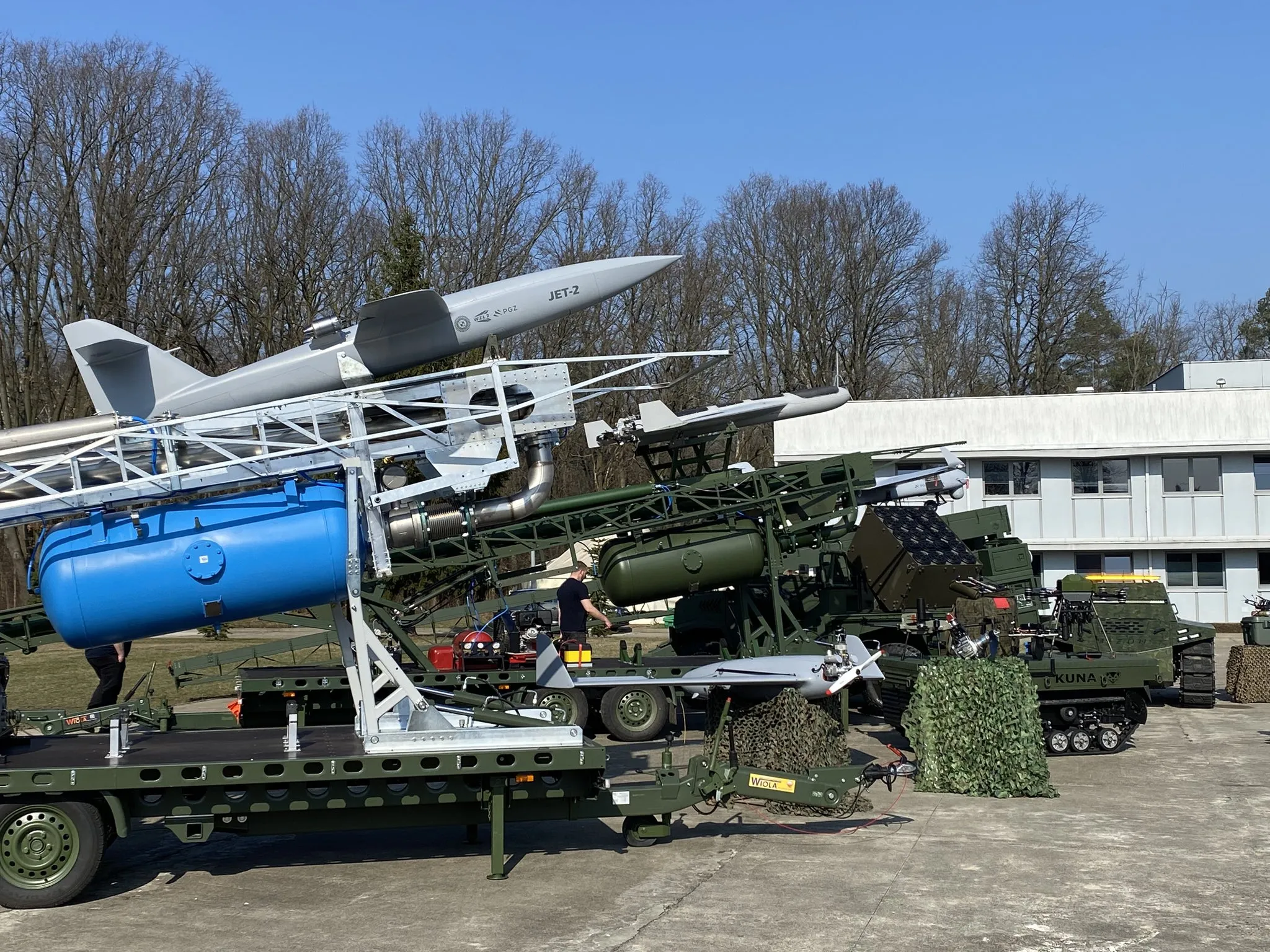Ale to nie wszystko. na zdjęciach widać też drona z silnikiem odrzutowym Jet-2. Jest to dzieło Wojskowych Zakładów Lotniczych - 2 Polskiej Grupy Zbrojeniowej.