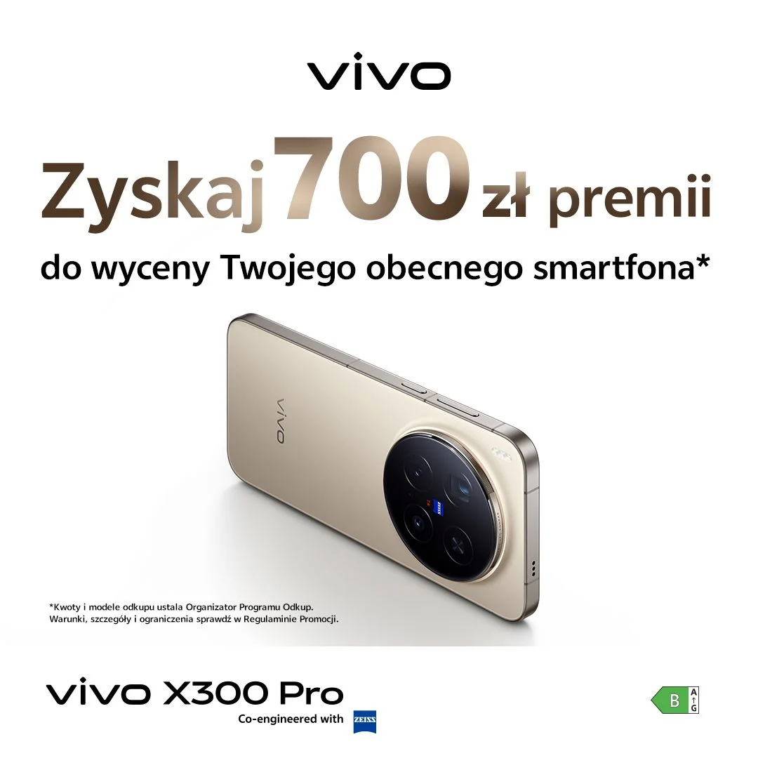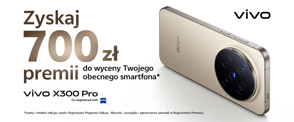 Załóżmy, że chciałbym mieć vivo X300 Pro, bo według wielu rankingów to najlepszy smartfon fotograficzny ubiegłego roku. Kosztuje 5399 zł. Gdybym oddał swój obecny smartfon i skorzystał z bonusu 700 zł od vivo, to zapłaciłbym za niego 4010 zł. Nie ma na rynku realnej konkurencji w tej cenie dla fotograficznej bestii.