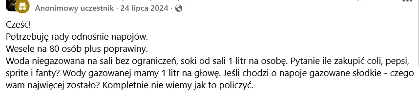 Jesienią w rozmowie z "Faktem" kobieta planująca wesele przyznała, że razem z przyszłym mężem zrezygnują z poprawin właśnie ze względu na wysokie koszty. Dziennik sprawdził, że napoje gazowane typu Pepsi to dodatkowe 17 zł od osoby.