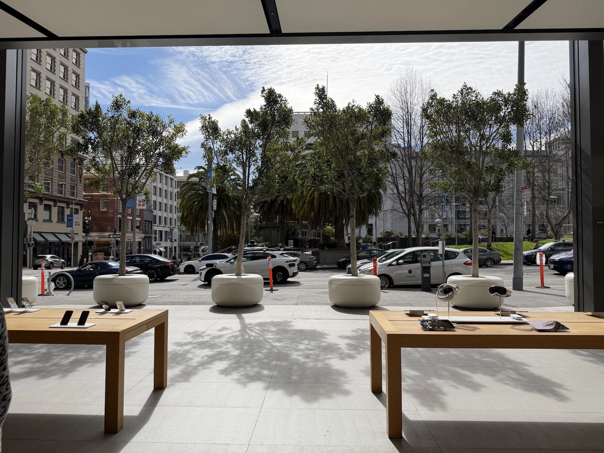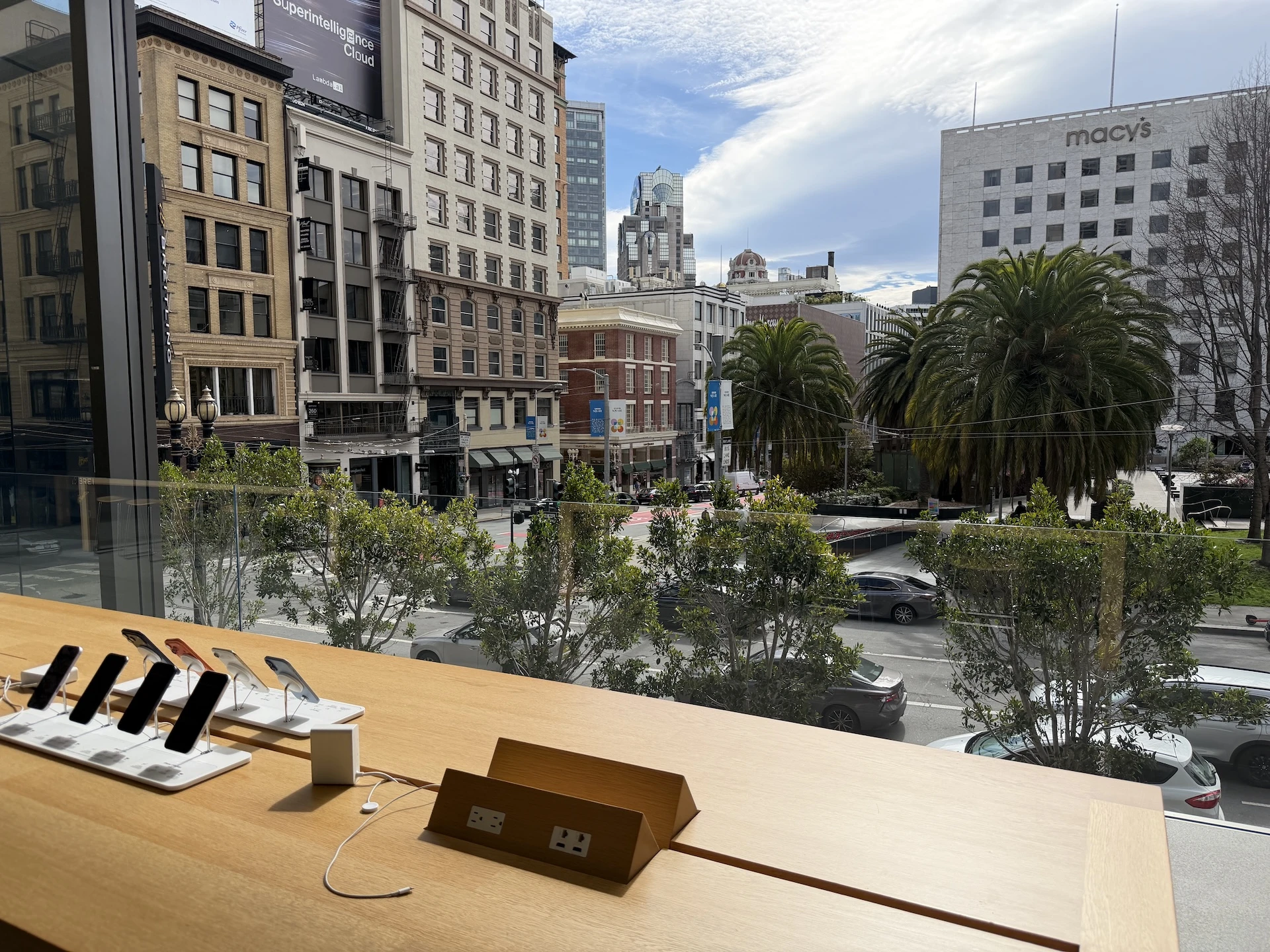 Będąc w San Francisco, nie mogłem sobie odmówić wizyty w Apple Store. Chciałem zaspokoić próżną ciekawość, wszakże w Polsce nie ma oficjalnych sklepów Tima Cooka. Polegamy wyłącznie na autoryzowanych pośrednikach, jak iMad czy iSpot. Wystarczających w celu zrobienia zakupów, ale słyszałem, że oryginalne Apple Store co coś więcej niż sklep. Postanowiłem to sprawdzić.