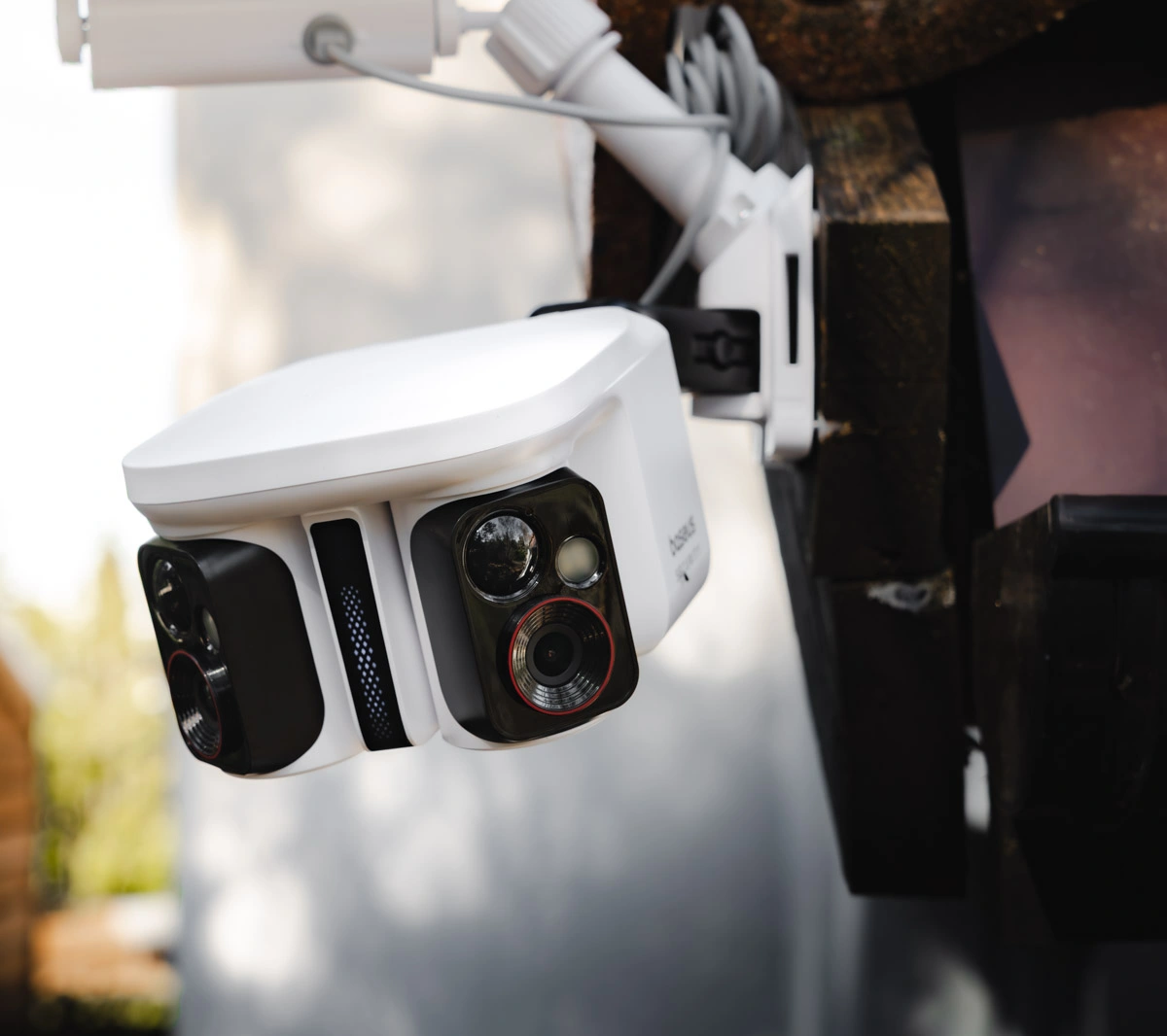 I która - jak widać po zdjęciu - jest tak naprawdę sprytnie pomyślanym zestawem dwóch kamer. Dokładniej - dwóch kamer (każda o rozdzielczości 3K), dwóch modułów doświetlających, panelu fotowoltaicznego i specjalnego uchwytu montażowego, który potrafi to wszystko połączyć w całość. Całość, która wygląda tak: