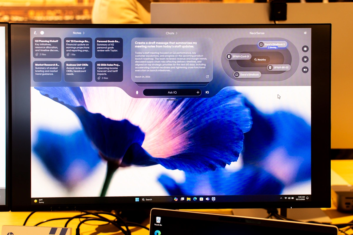 Drugim filarem HP IQ jest NearSense - system, który pozwala urządzeniom wykrywać się nawzajem i współpracować bez konfiguracji. Jeśli brzmi to jak AirDrop, Continuity i Chromecast w jednym, to… tak, to mniej więcej to. HP chce, by przenoszenie pracy między komputerami, salami konferencyjnymi i akcesoriami było tak naturalne, jak odłożenie telefonu na biurko.