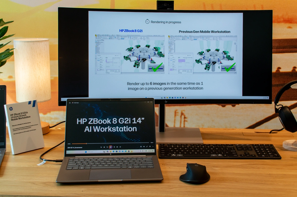 W testach Autodesk Inventor, ZBook 8 G2i potrafił renderować 3,3× szybciej niż poprzednia generacja .Do tego dochodzi nowy zasilacz GaN - 40 proc. mniejszy i 50 proc. lżejszy.