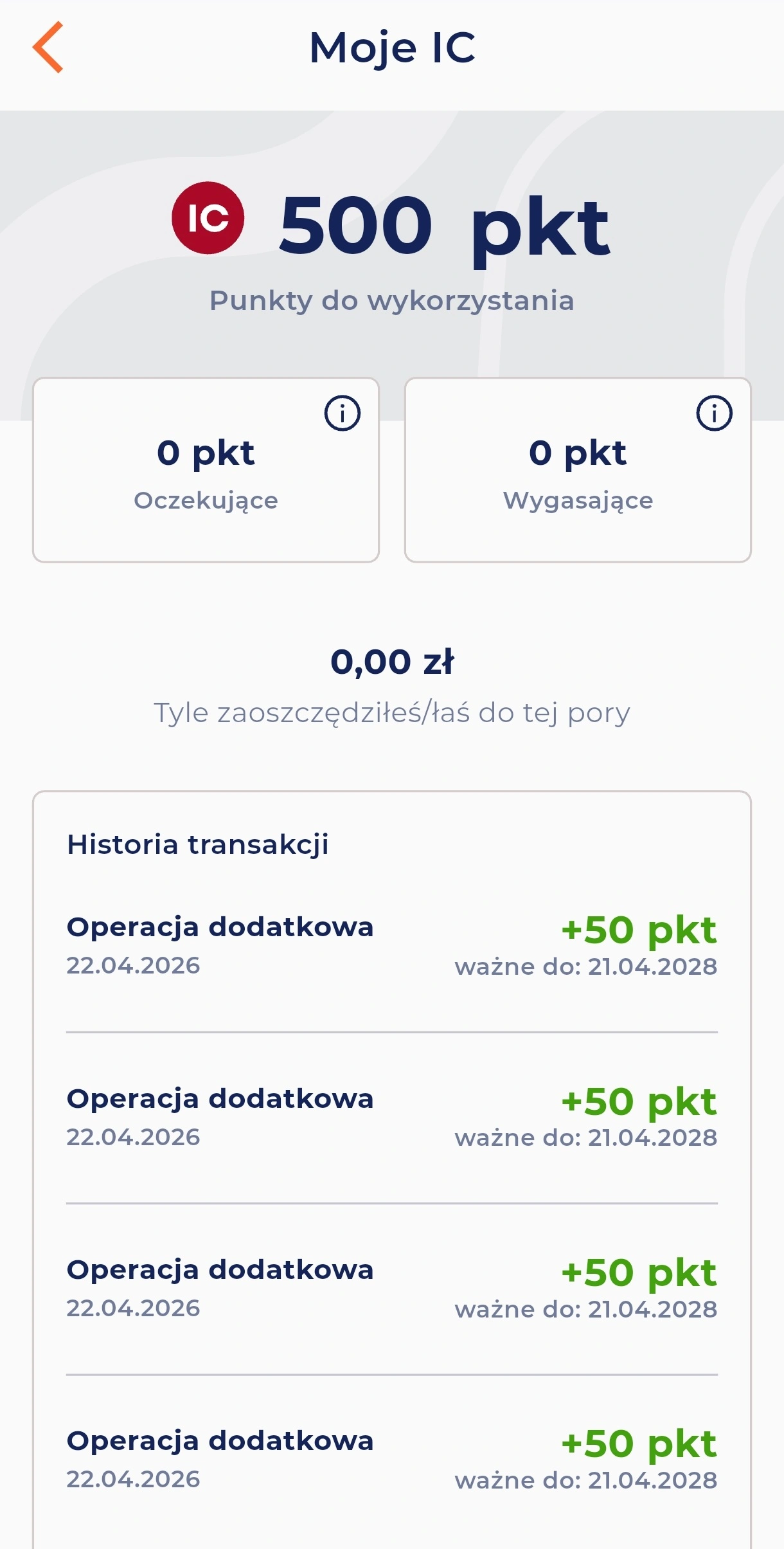 Co ważne, punkty będą miały status oczekujące do końca dnia, w którym upływa termin ważności dokumentu przewozu. Po upływie tego terminu zmienią status na "aktywne" i będzie można z nich skorzystać. W ten sposób PKP Intercity zabezpiecza się przed cwaniakami, którzy kupowaliby bilety, zabierali punkty, wykorzystywali je i rezygnowali z przejazdu.