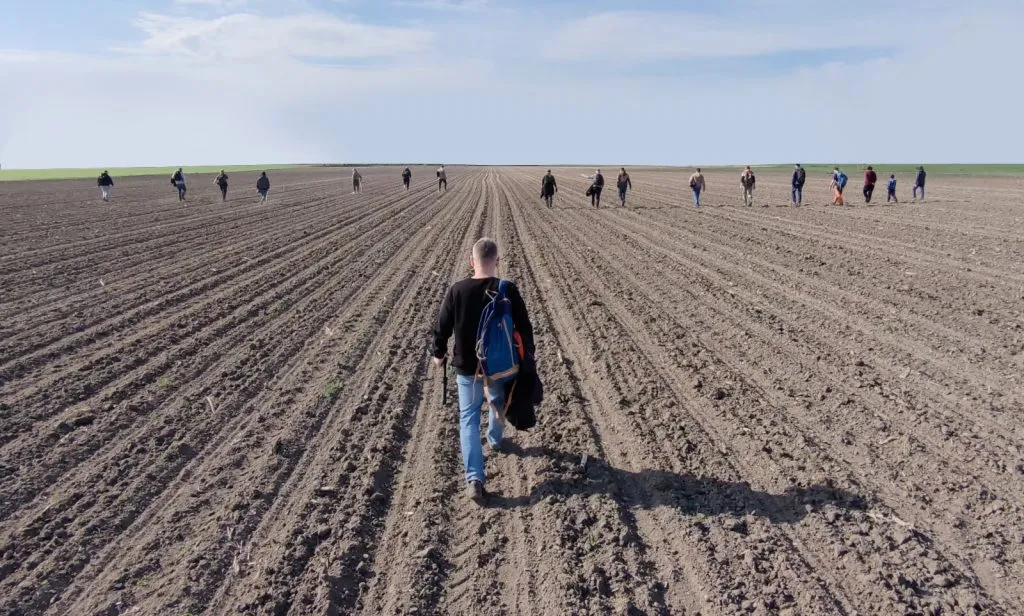 Wytypowanie obszaru to jedno, ale fizyczne odnalezienie kosmicznej skały na rozległych polach to zupełnie inna bajka. Pierwszy rekonesans przeprowadzono już dzień po spadku. W niedzielę, 19 kwietnia, w teren ruszyła prawdziwa armia, aż 26 osób uzbrojonych w drony i wykrywacze metali.