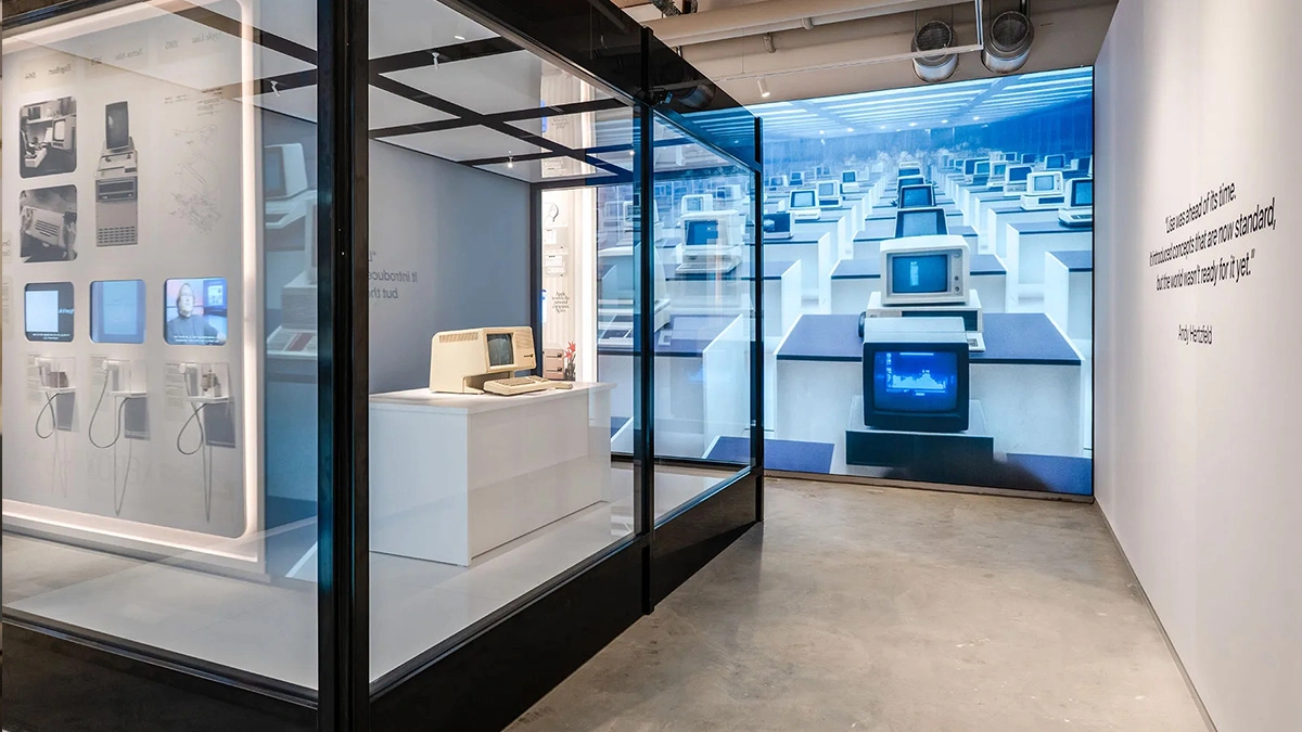 Poza przedstawieniem historii koncernu poprzez produkty i przestrzenie tematyczne, w tym korytarz "Think Different", Muzeum Apple pochyliło się także nad okresem, w którym Steve Jobs nie był związany z Apple, oraz jego latom spędzonym w firmie NeXT.