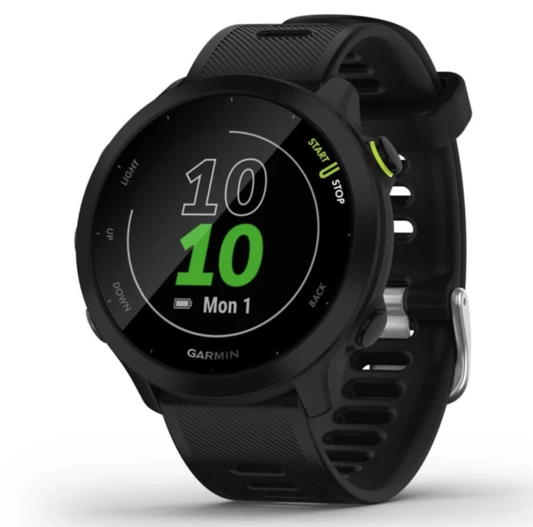 Garmin Forerunner 55 to świetny smart zegarek na początek przygody z budowaniem kondycji. Urządzenie zostało zaprojektowane z myślą o takich aktywnościach fizycznych jak chód, bieganie, pływanie, joga czy trening HIIT. Smartwatch Garmina liczy kroki, minuty intensywnej aktywności fizycznej, tętno oraz masę innych parametrów. Do tego posiada wbudowany moduł GPS, a także wyświetla powiadomienia ze smartfona.