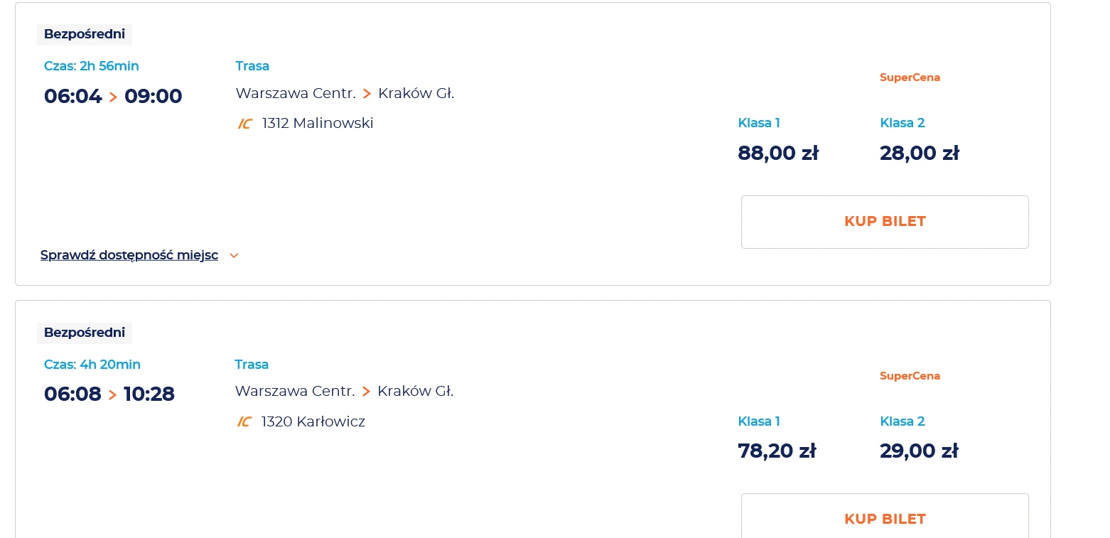 Serwis zauważa, że w kwietniu najtańsze bilety pomiędzy aktualną a obecną stolicą dotyczą jedynie porannego kursu. Wejściówka na pokład pociągu startującego z Warszawy o 5:48 kosztuje przeważnie 59- 79 zł. Dla porównania, jadący chwilę później pociąg PKP Intercity zaprasza już od 28 zł, a oba składy pokonują drogę w tym samym czasie.