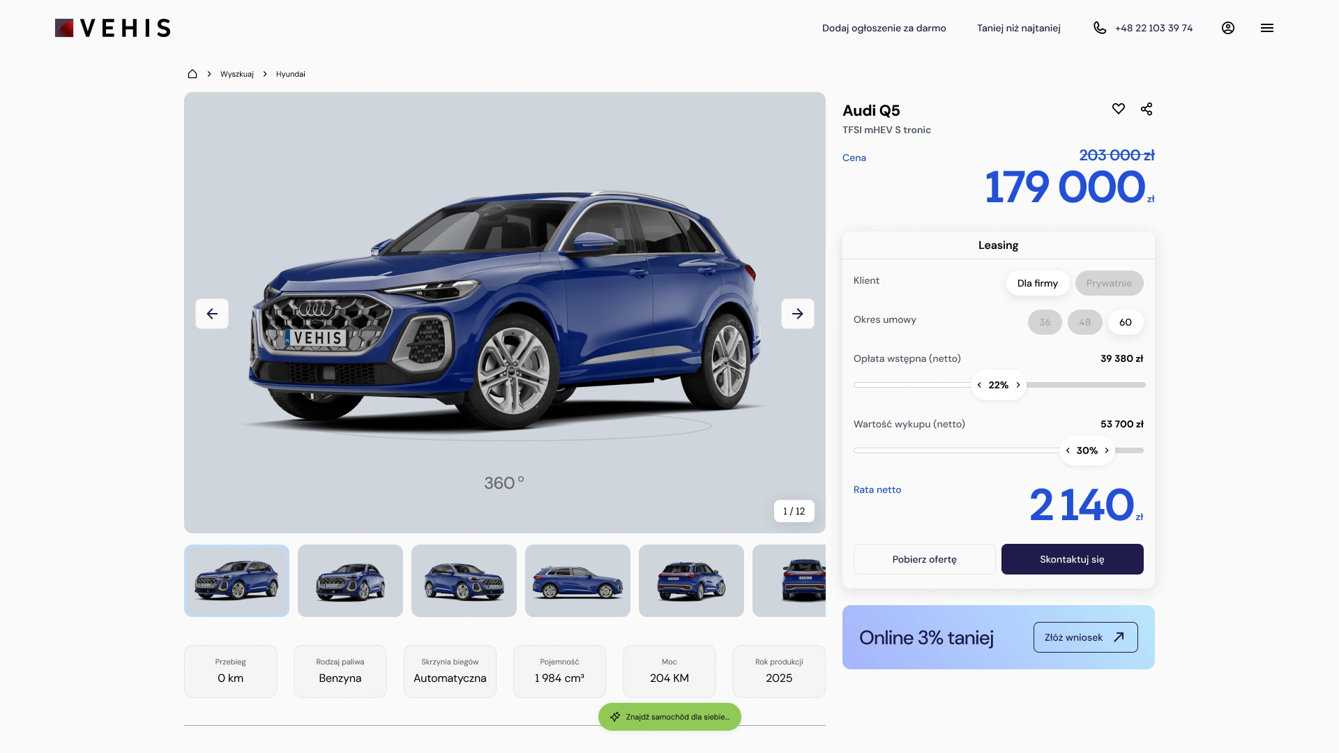 Proces nabycia samochodu online w VEHIS jest wygodny