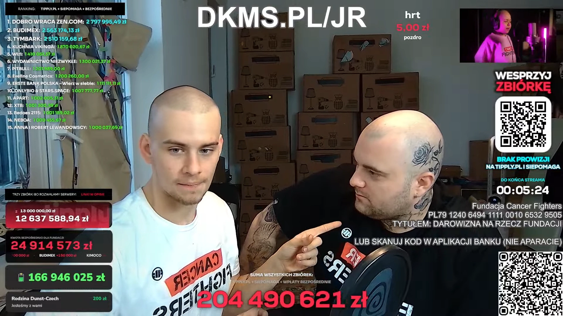 Do streama dołączali kolejni darczyńcy, do kawalerki Łatwoganga przychodzili goście, którzy rozkręcali streama i w efekcie otrzymaliśmy 9-dniowy charytatywny stream, na którym działy się rzeczy niesłychane. Widzieliśmy jak Małgorzata Kożuchowska rozwala górę kartonów, nawiązując do ikonicznej sceny śmierci swojej postaci w serialu M jak miłość, zobaczyliśmy niezwykłe koncerty: Szpaku, Mrozu, Sanah czy Golec Orkiestra. To tylko nieliczne postacie, które przewinęły się przez studio. Peja pogodził się z Tede, Szczęsny zaangażował do tańca na TikToku Yamala, Robert Lewandowski przelał milion.