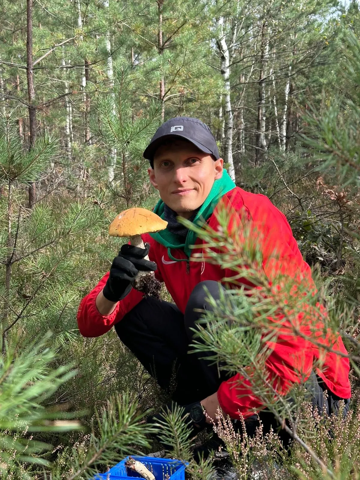Autor tekstu na grzybobraniu. Fot. archiwum prywatne.