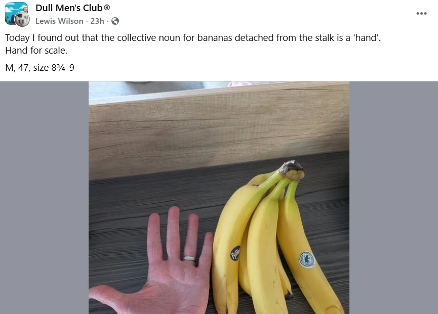 W społeczności wciąż żywy jest żart z porównywaniem przedmiotów na zdjęciu do banana (słynne banana for scale) Źródło: Facebook/Dull Men's Club.